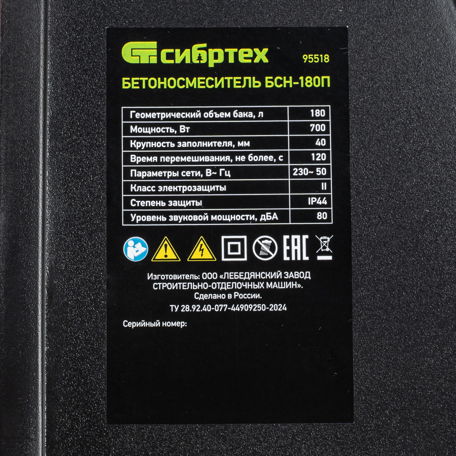Бетоносмеситель Сибртех БСН-180П мощностью 700 Вт предназначен для приготовления бетонных смесей и штукатурных растворов. Допускается использование крупнозернистых заполнителей с фракциями размером до 40 мм. Объем бака составляет 180 л, за один замес можно получить до 80 л готовой смеси. Время замешивания не превышает 2 минут, что позволяет избежать длительных перерывов в работе. Бетоносмеситель используется для проведения строительных работ небольшого объема.