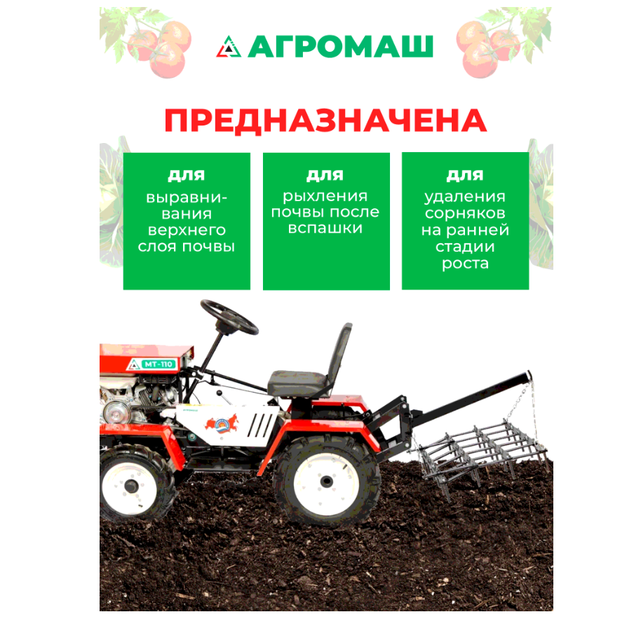 Борона зубцовая для минитрактора Агромаш МТ-110