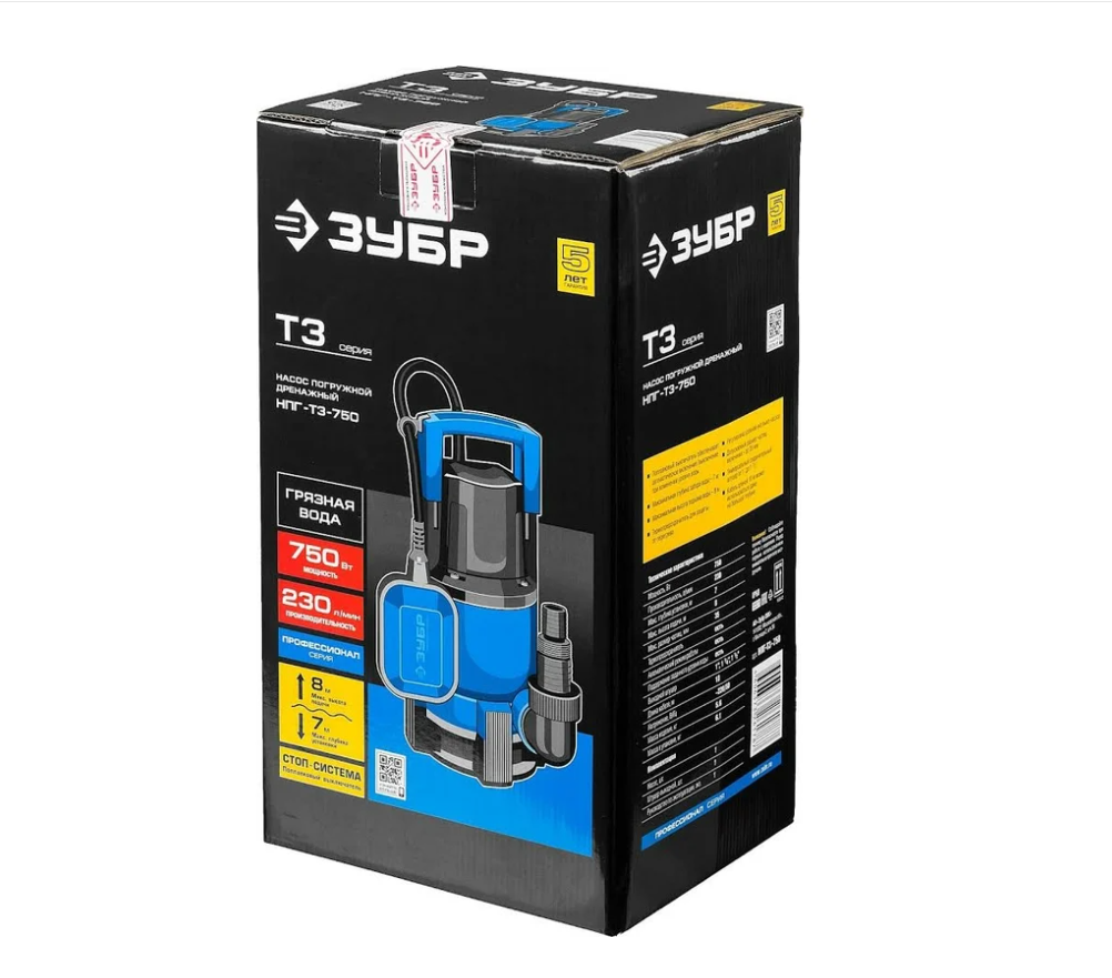 Погружной дренажный насос для грязной воды ЗУБР Профессионал Т3 НПГ-Т3-750 подходит для осушения бассейнов, затопленных помещений и подачи воды из колодцев. Имеет пропускную способность 230 л/мин. Поплавковый выключатель предохраняет насос от поломки. Предусмотрена защита от перегрева двигателя, что гарантирует долгий срок службы.