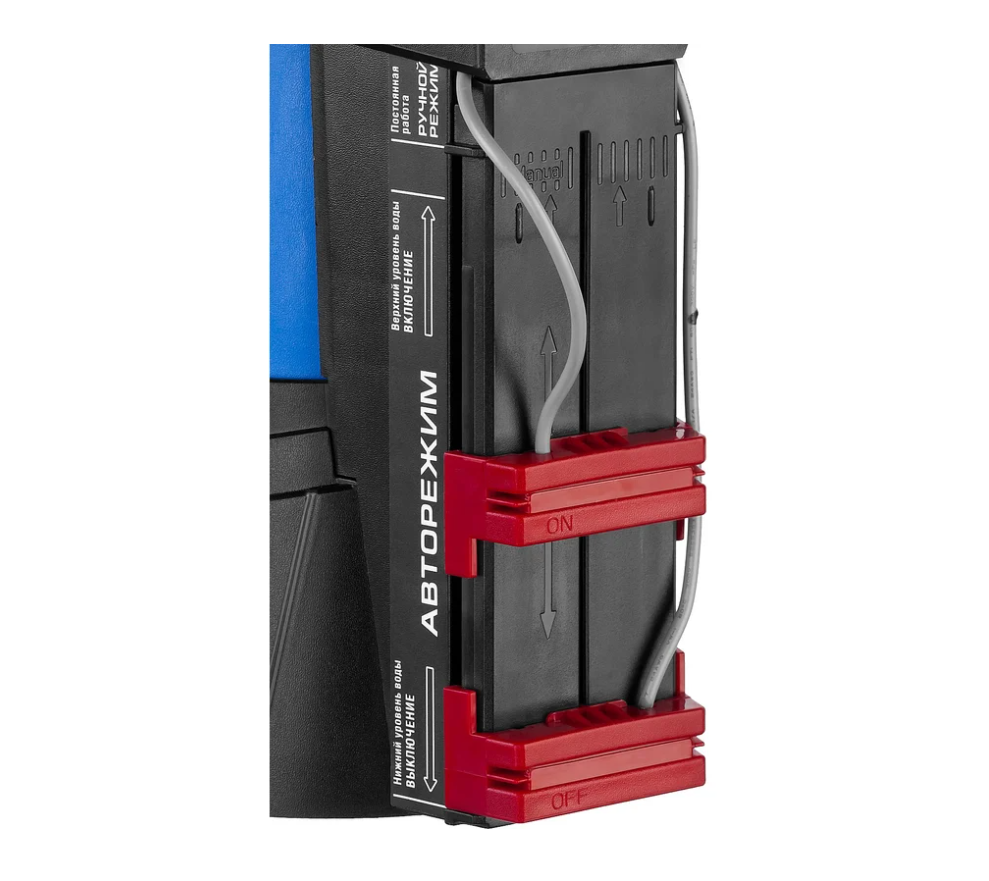 - Регулировка уровня включения и выключения погружного дренажного насоса для чистой воды Зубр Профессионал Т7 АкваСенсор НПЧ-Т7-250.