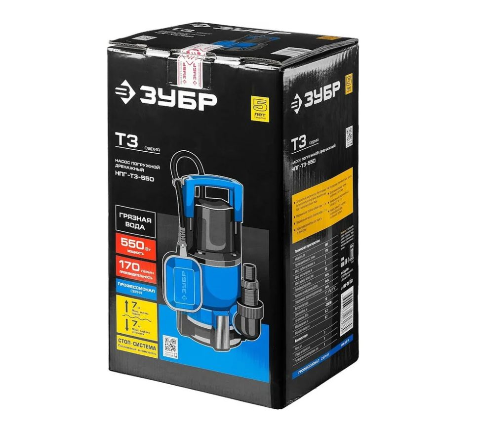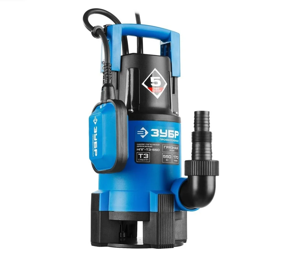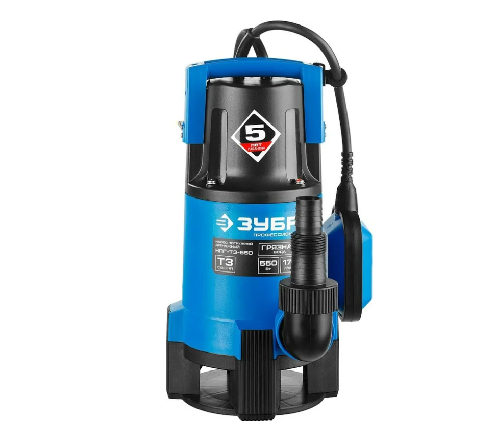 Погружной дренажный насос для грязной воды ЗУБР Профессионал Т3 НПГ-Т3-550 - надежный аппарат для организации забора воды с глубины до 7 метров. Модель способна перекачивать чистую воду и воду с повышенным содержанием включений. Имеет ударопрочный корпус и ручку для переноски. Поплавок способен эффективно решить проблему "сухого хода".