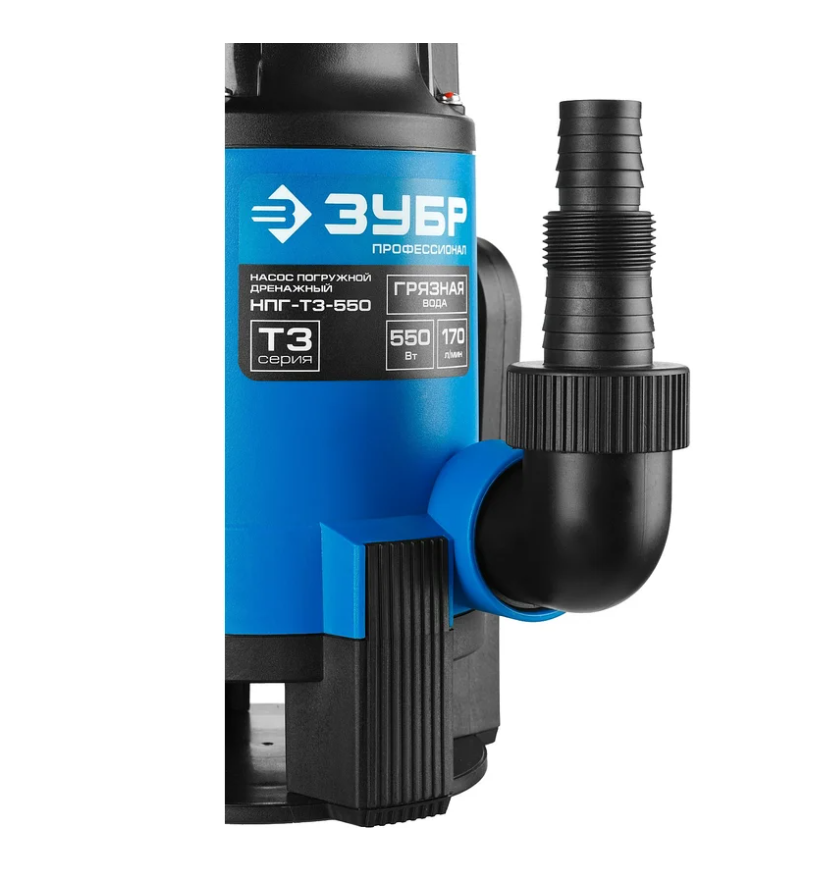 - Регулировка уровня включения и выключения погружного дренажного насоса для грязной воды ЗУБР Профессионал Т3 НПГ-Т3-550.