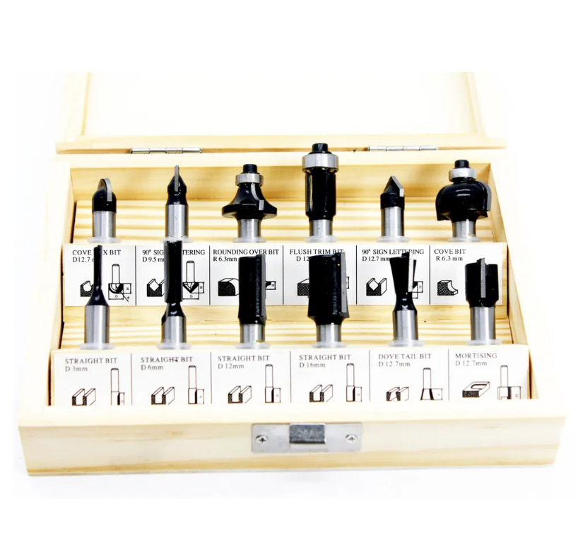 В комплекте набор фрез 12 предметов.