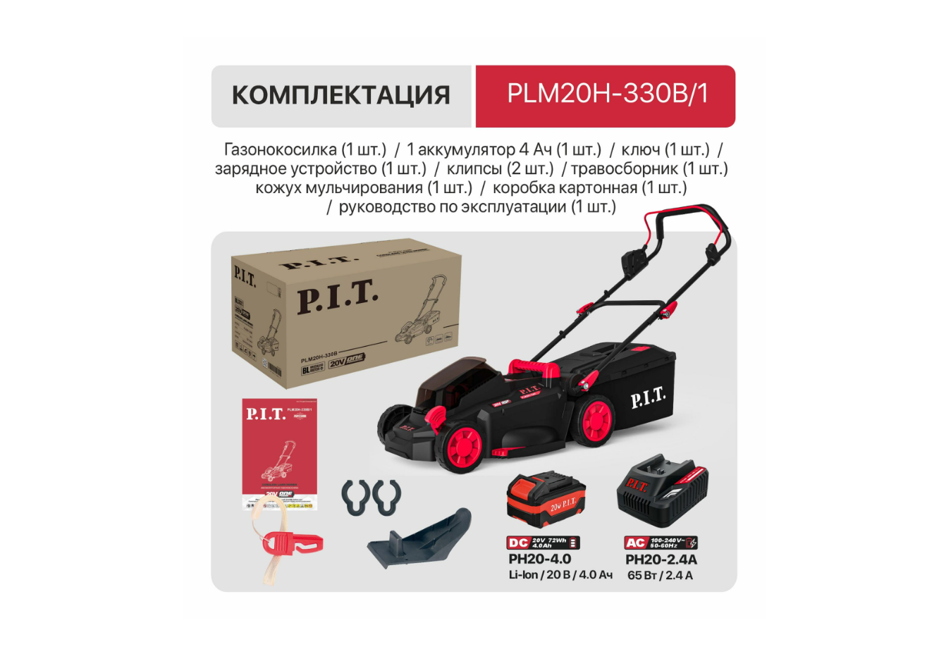Аккумуляторная газонокосилка P.I.T. PLM20H-330B/1 - отличный помощник для борьбы с растительностью на дачных участках. Работает без вреда для экологии, запаха и выхлопов. Обеспечивает ровный срез при минимальных физических усилиях. Газонокосилку не нужно переносить, поднимать, вибрация практически не чувствуется, ремни не натирают, не нужно наклоняться и напрягать спину. Обладает более мощным бесщеточным двигателем, эффективно расходует заряд АКБ и стабильнее работает над нагрузкой. При этом аккумуляторная газонокосилка - очень легкая и маневренная.