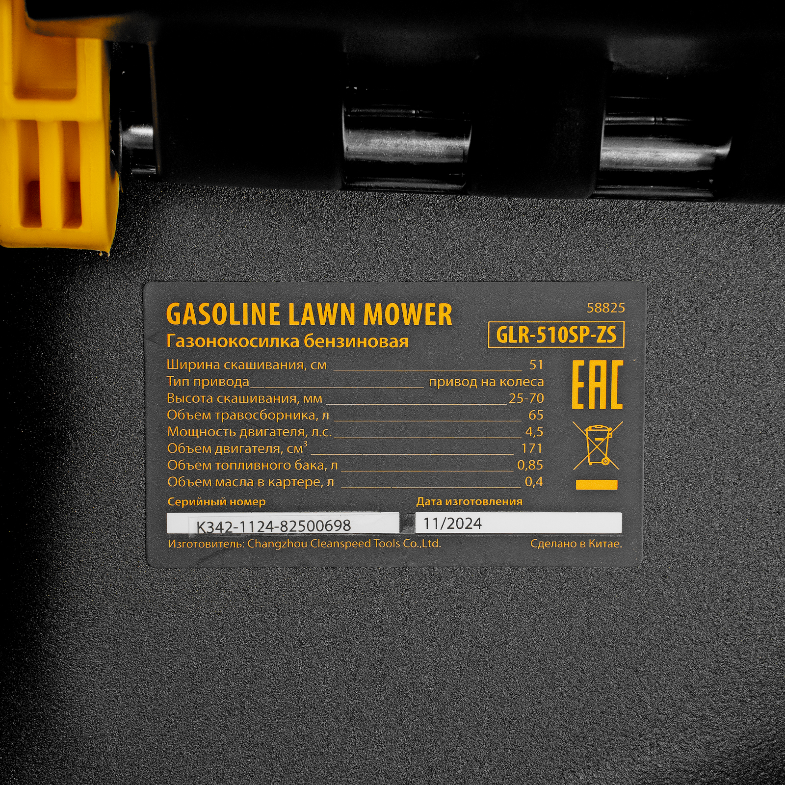 Бензиновая газонокосилка Denzel GLR-510SP-ZS с приводом на колеса и травосборником вместимостью 65 л, с надежным и экономичным 4-тактным двигателем объемом 171 см3, обеспечивает ширину прохода 51 см. Предназначена для стрижки газонов и скашивания травы в саду, будет полезна для ухода за дачным участком или придомовой территорией большой площади. Высота скашивания легко регулируется одним рычагом в диапазоне 25-70 мм (предусмотрено 8 уровней).