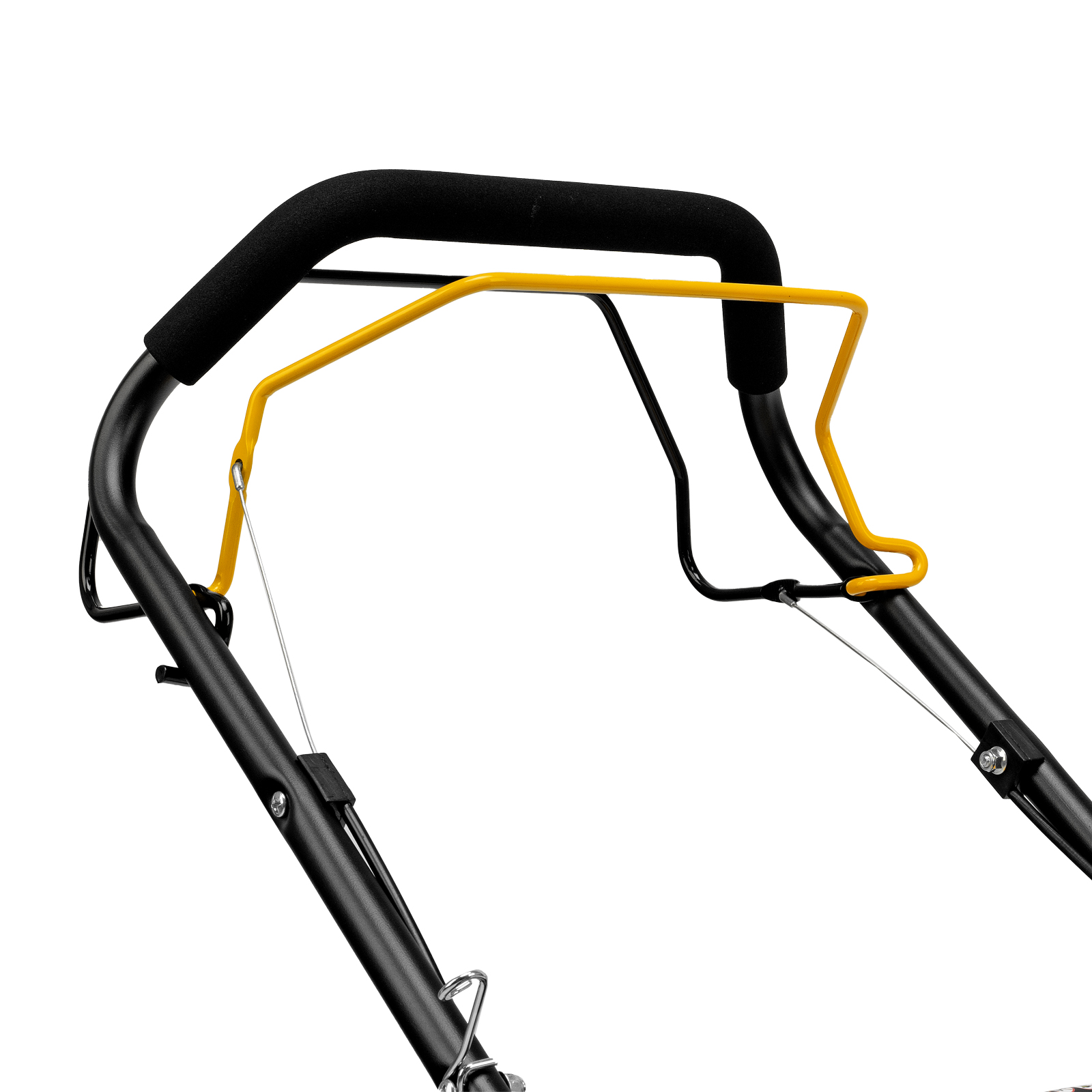 - Оптимизированная геометрия деки — прочный корпус изготовлен таким образом, чтобы срезанная трава быстрее и легче попадала в травосборник.