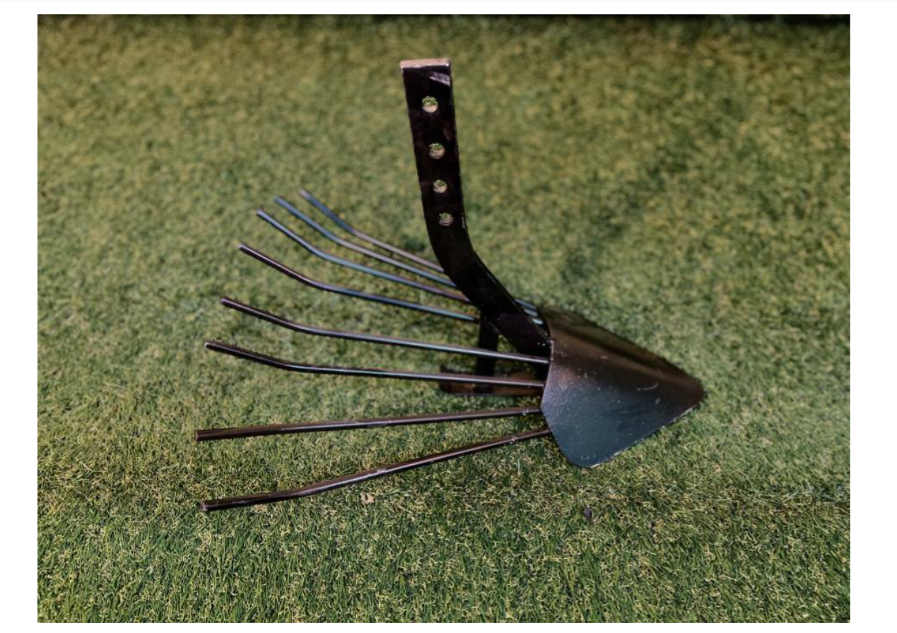 - Проходя через конструкцию орудия, земля частично просеивается сквозь прутки или между зубьями, а клубни картофеля выкладываются на поверхность обработанного участка.