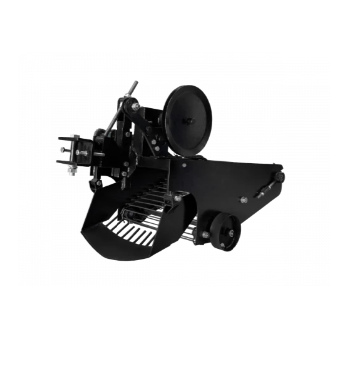 Сама конструкция картофелекопалки состоит из сварной рамы, приводного шкива, редуктора, приводных звездочек, эксцентрики, ножа, транспортерной ленты, колес и прицепного узла.