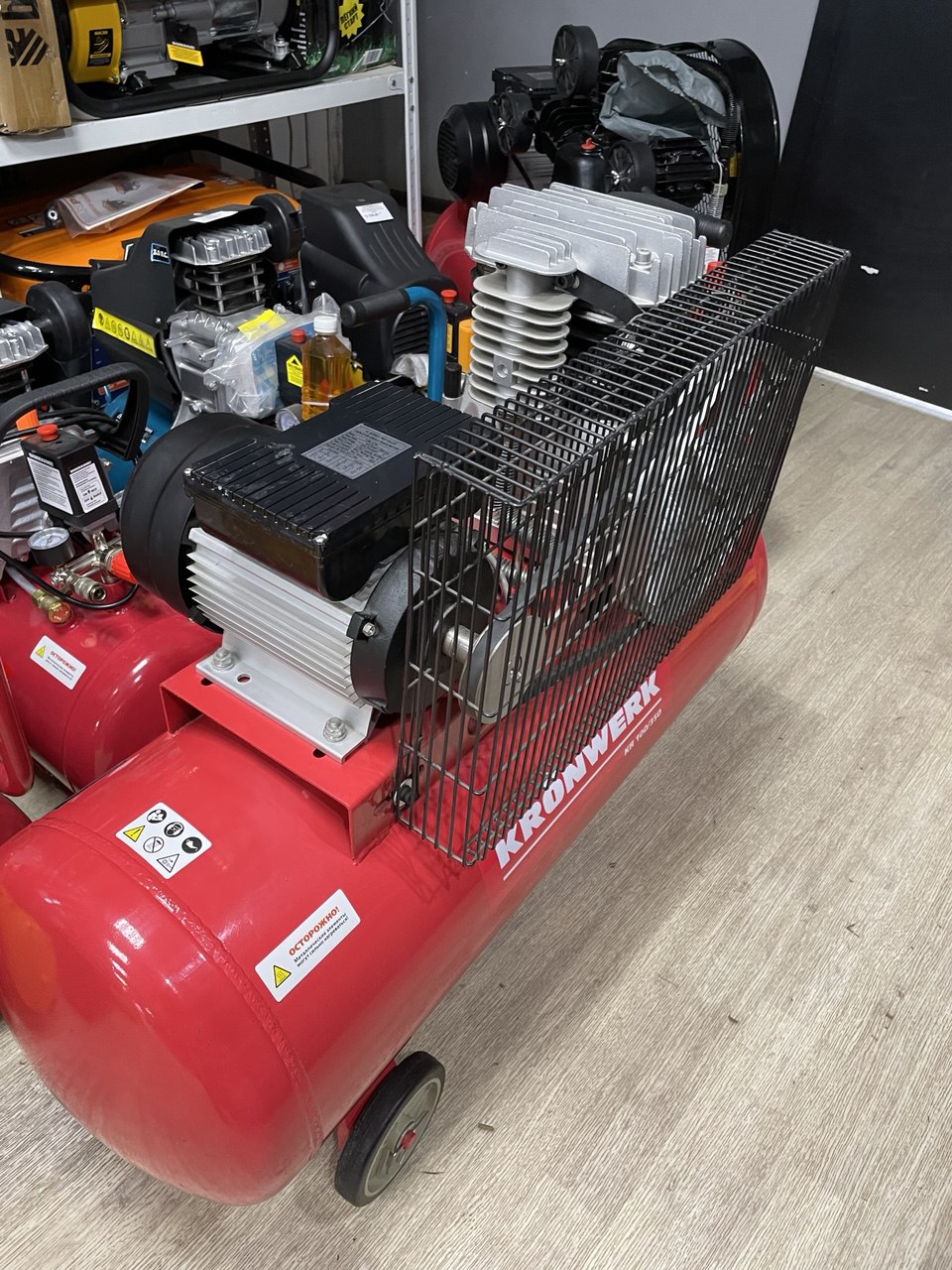 - малый вес и удобные колёсики позволяют легко перемещать компрессор в помещении.