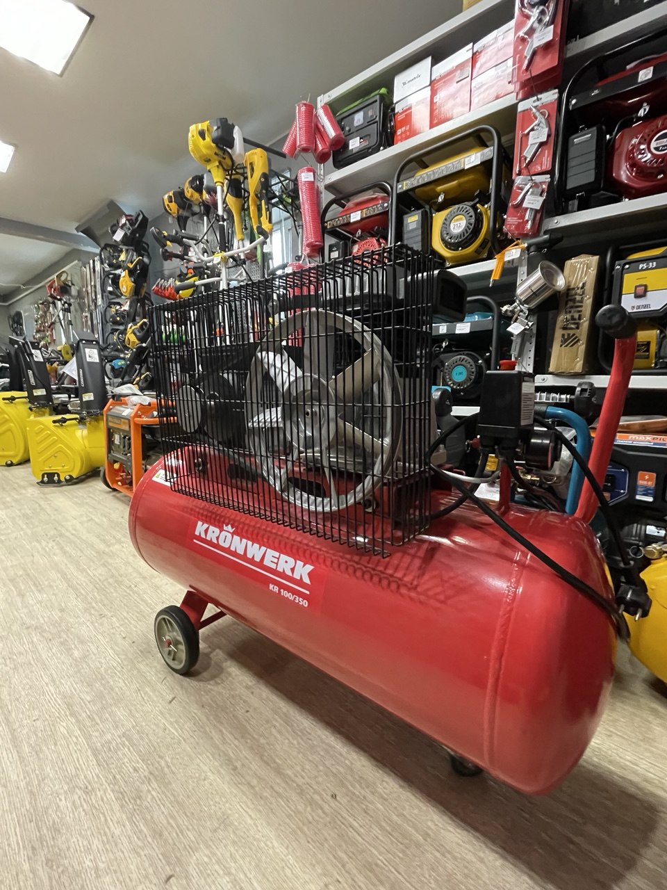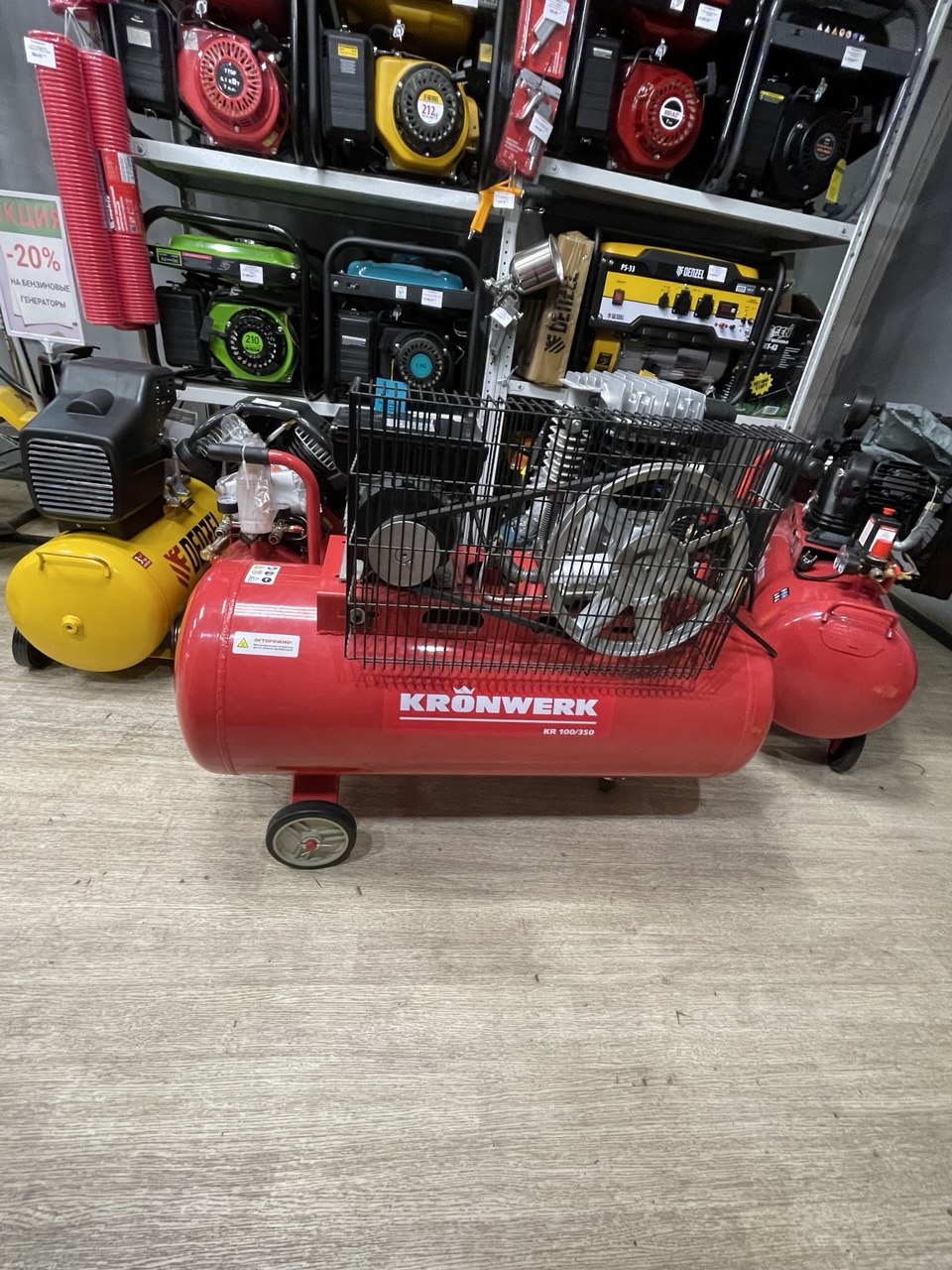Масляный компрессор Kronwerk 2,2 кВт/220 В (100 л, 350 л/мин) – это воздухонагнегательный аппарат, который используется для подключения профессионального пневматического оборудования. Используется в автомастерских для подкачки шин, при выполнении различных отделочных и малярных работ в помещениях (для подключения краскораспылителей), на мелких производствах. Качественный, долговечный мотор на 2,2 кВт обеспечивает стабильную подачу чистого воздуха до 350 литров в минуту.