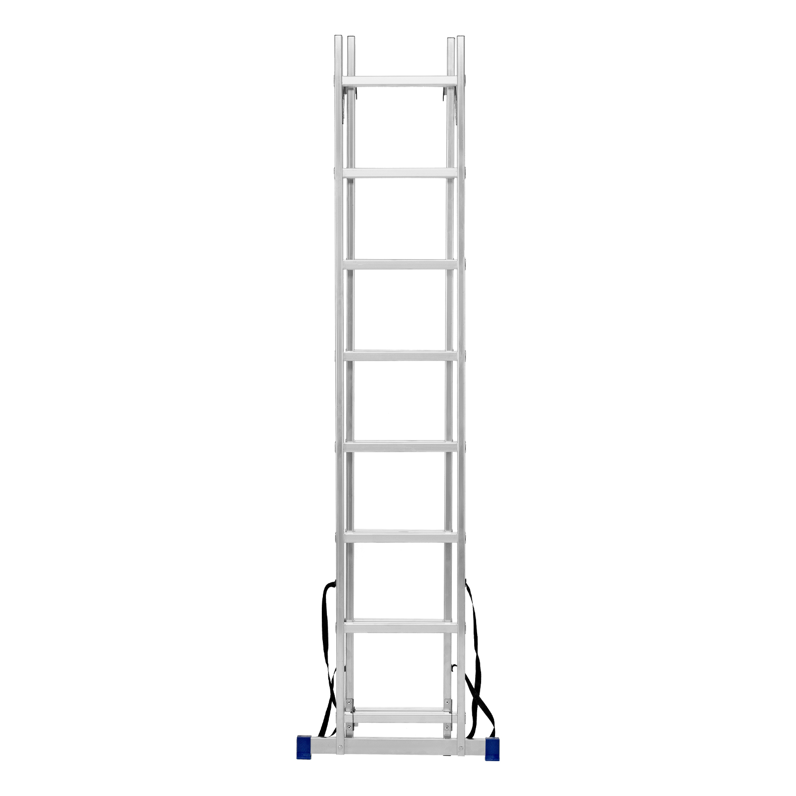 Алюминиевая двухсекционная лестница Сибртех состоит из х секций по 8 ступеней каждая. Легкая и прочная, она используется в качестве двухсторонней стремянки, предназначена для бытового и полупрофессионального применения.