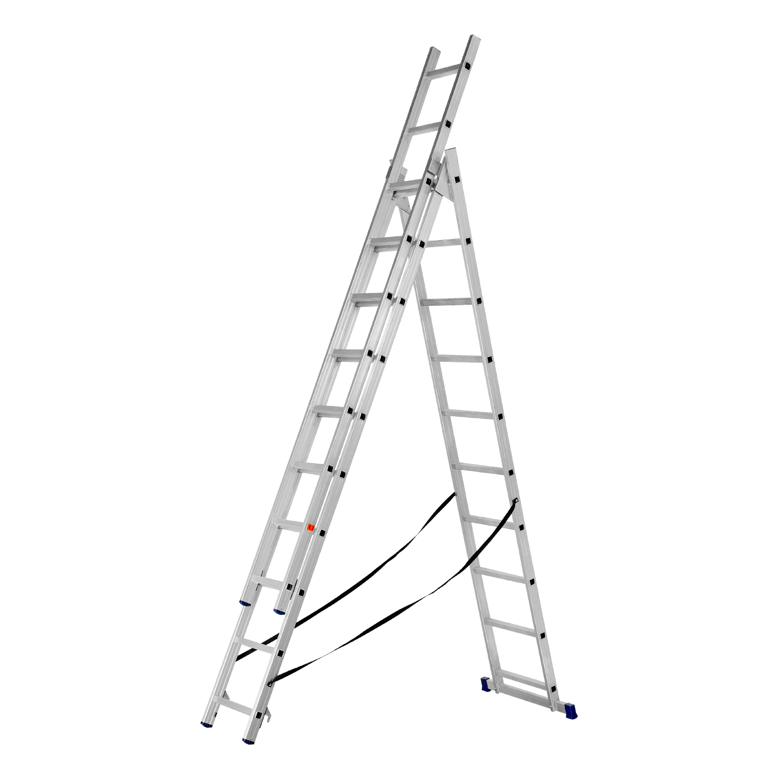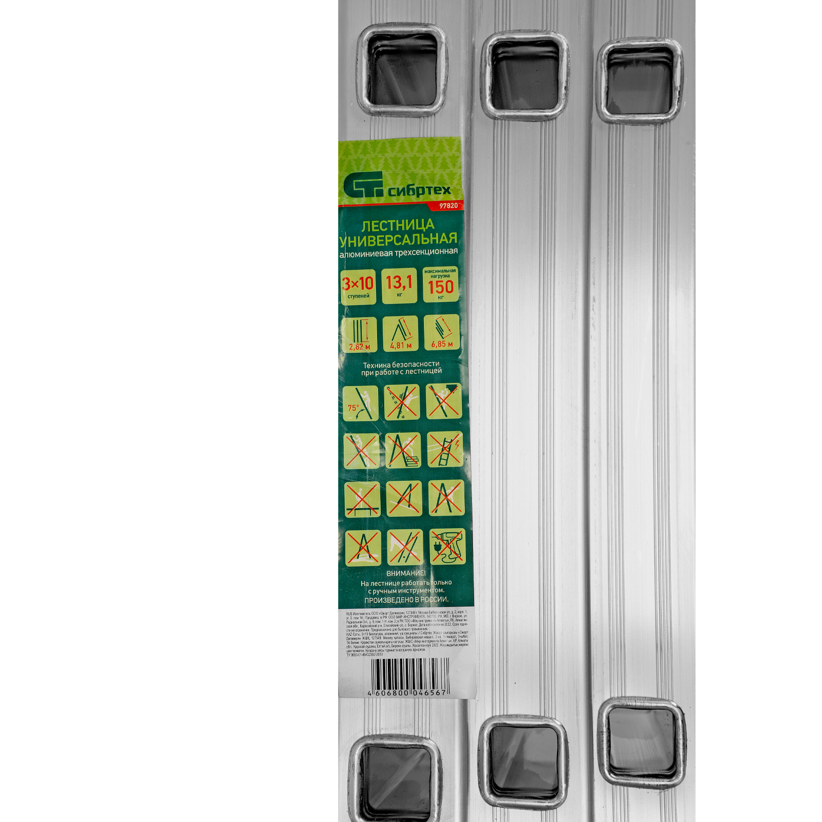 Алюминиевая трехсекционная лестница Сибртех состоит из 3 секций по 10 ступеней каждая. Она предназначена для использования преимущественно на открытом воздухе и в помещениях с высокими потолками, подойдет также для работников коммунальных служб и строителей. Лестница поможет провести отделочные, монтажные работы, будет полезна на складе.