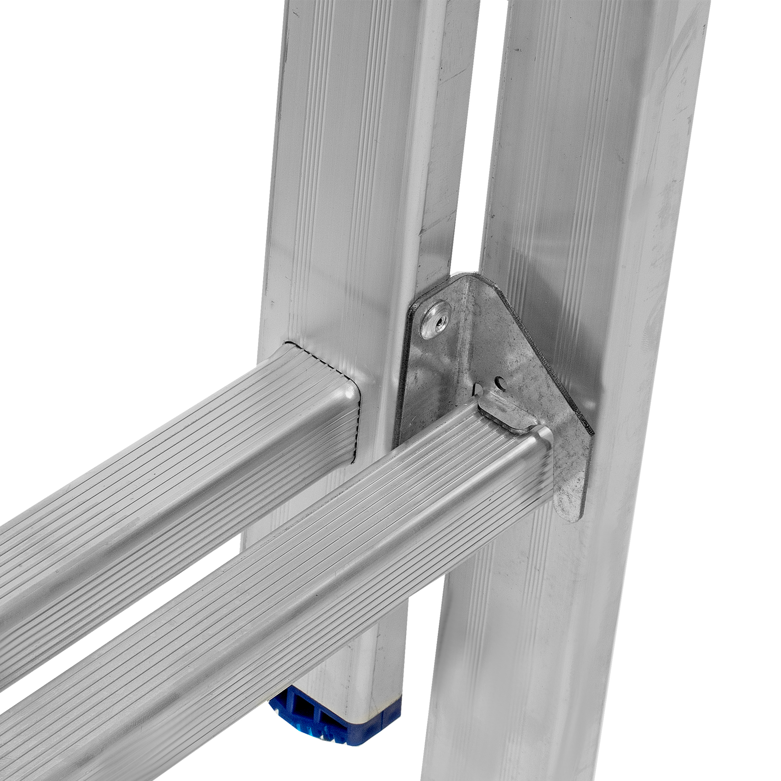 - Устойчивость — лестница оснащена съемным стабилизатором, выравнивающим ее положение на горизонтальных поверхностях.