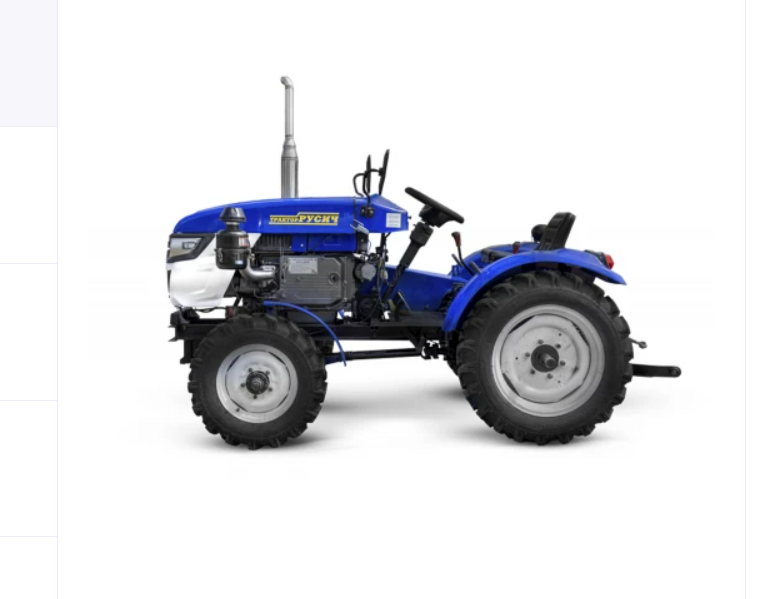 Мини-трактор Русич Т-30 ВОМ 4x4 оснащен одноцилиндровым дизельным двигателем, односекционным гидравлическим распределителем с плавающим режимом, зеркалами заднего вида, передними и задними крыльями, полноценной тракторной трансмиссией, усиленной задней осью.