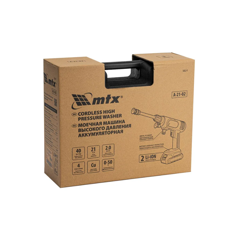 Аккумуляторная моечная машина высокого давления MTX А-21-02 представляет собой удобное и эффективное решение для бытовых нужд. Она оснащена мощным аккумулятором на 21 В и двумя аккумуляторами в комплекте, что обеспечивает продолжительное время работы без необходимости частой подзарядки. Максимальное рабочее давление в 40 бар и производительность 4 литра в минуту позволяют эффективно очищать различные поверхности, включая внедорожники, садовые дорожки, фасады, мотоциклы и легковые автомобили. Металлическая помпа с медной головкой цилиндра гарантирует долговечность и надежность устройства. Компактные размеры и вес в 2.66 кг делают машину удобной в транспортировке и хранении. В комплект входит пеногенератор, что упрощает процесс нанесения моющего средства.