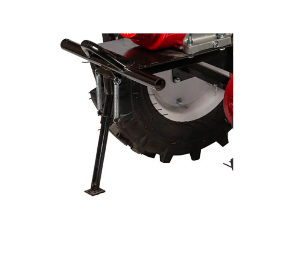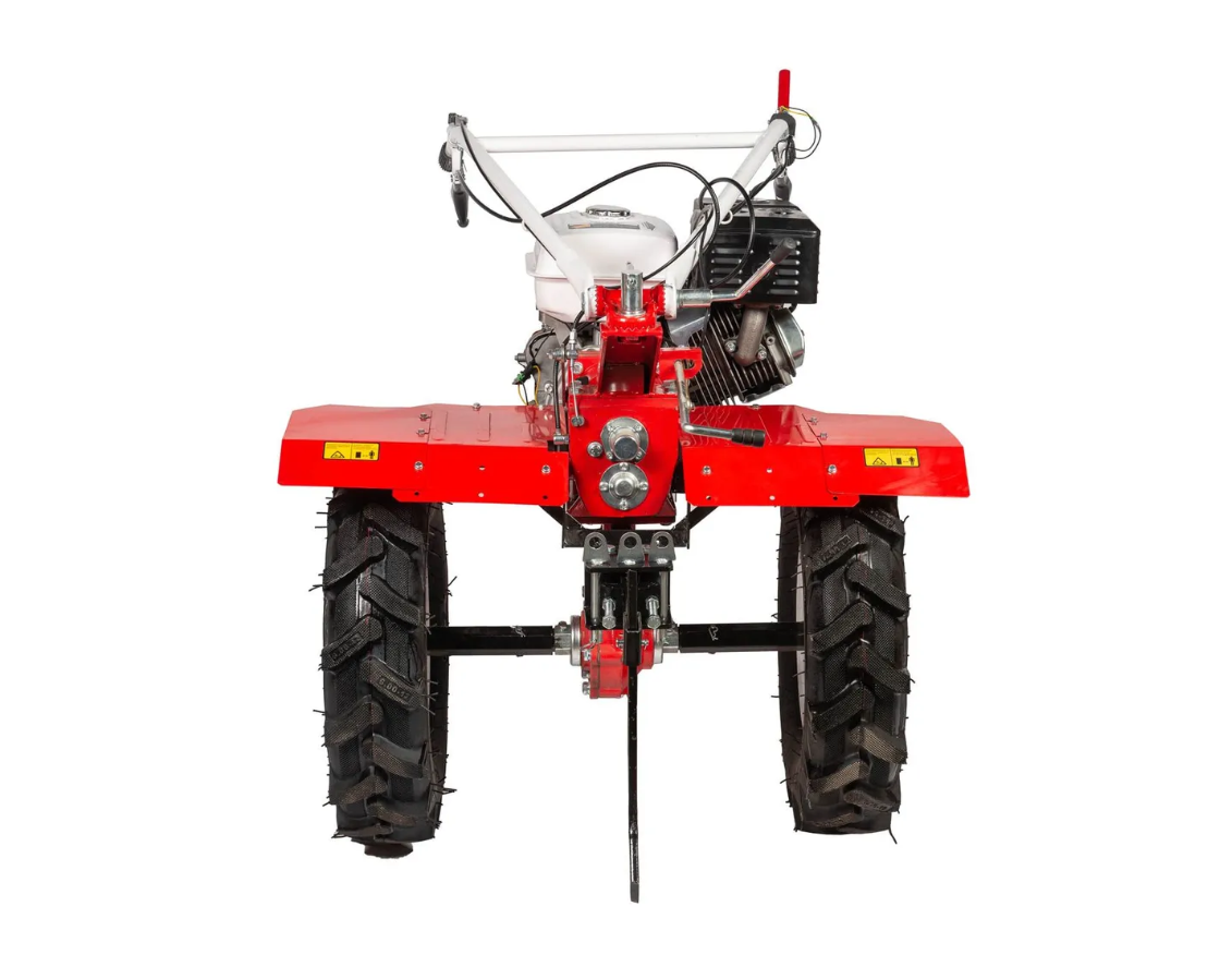 Имеет возможность использовать навесное оборудование: тележку, плуг, окучник и картофелевыкапыватель. Оборудован мощным 4-х тактным двигателем, прочными фрезами и сошником для регулировки глубины культивации.