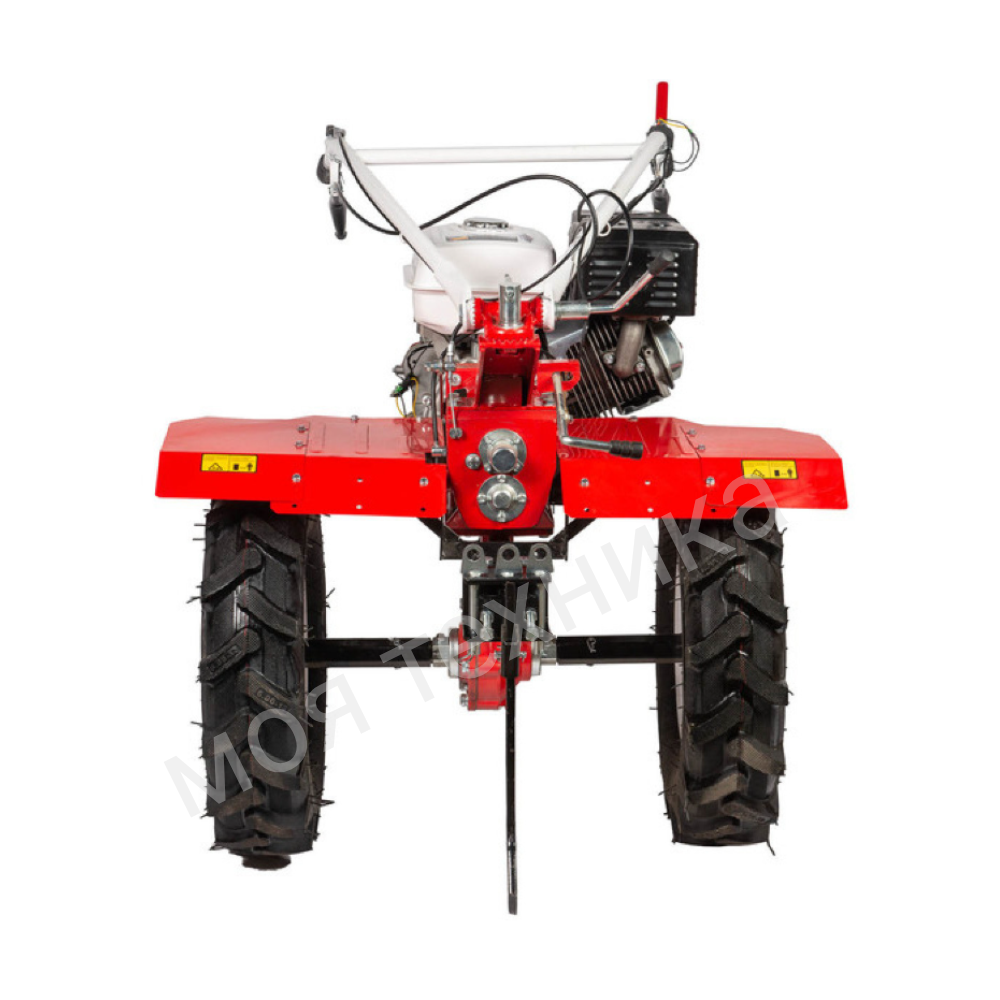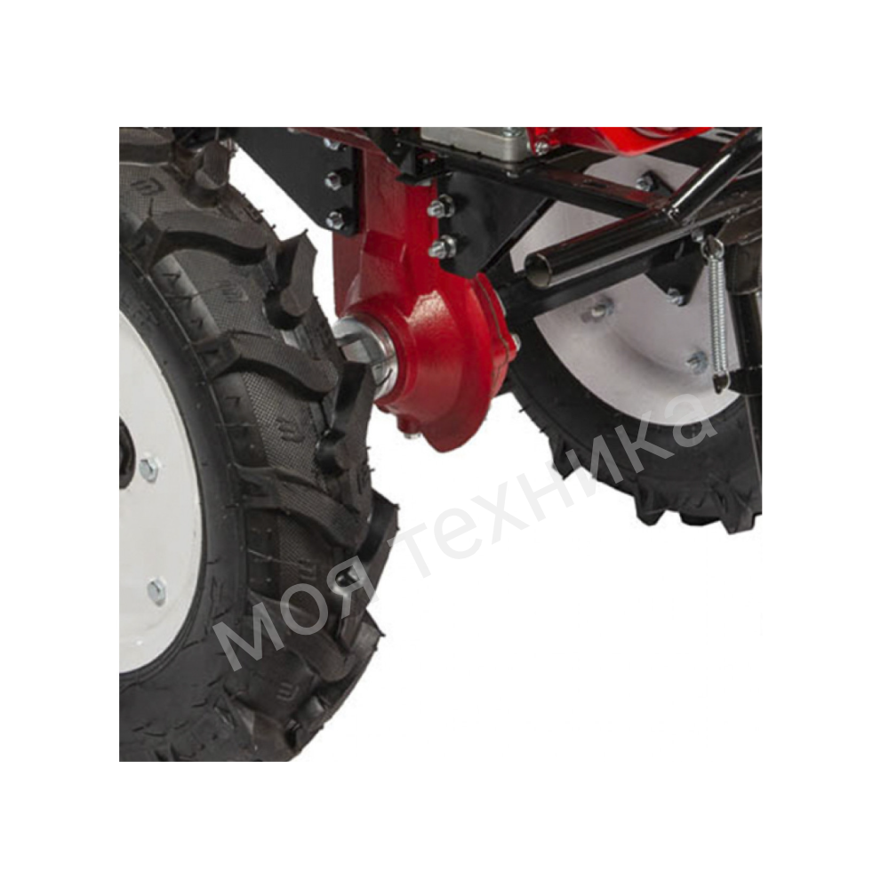 - Большие пневматические колеса обеспечивают отличную проходимость мотоблока по местности