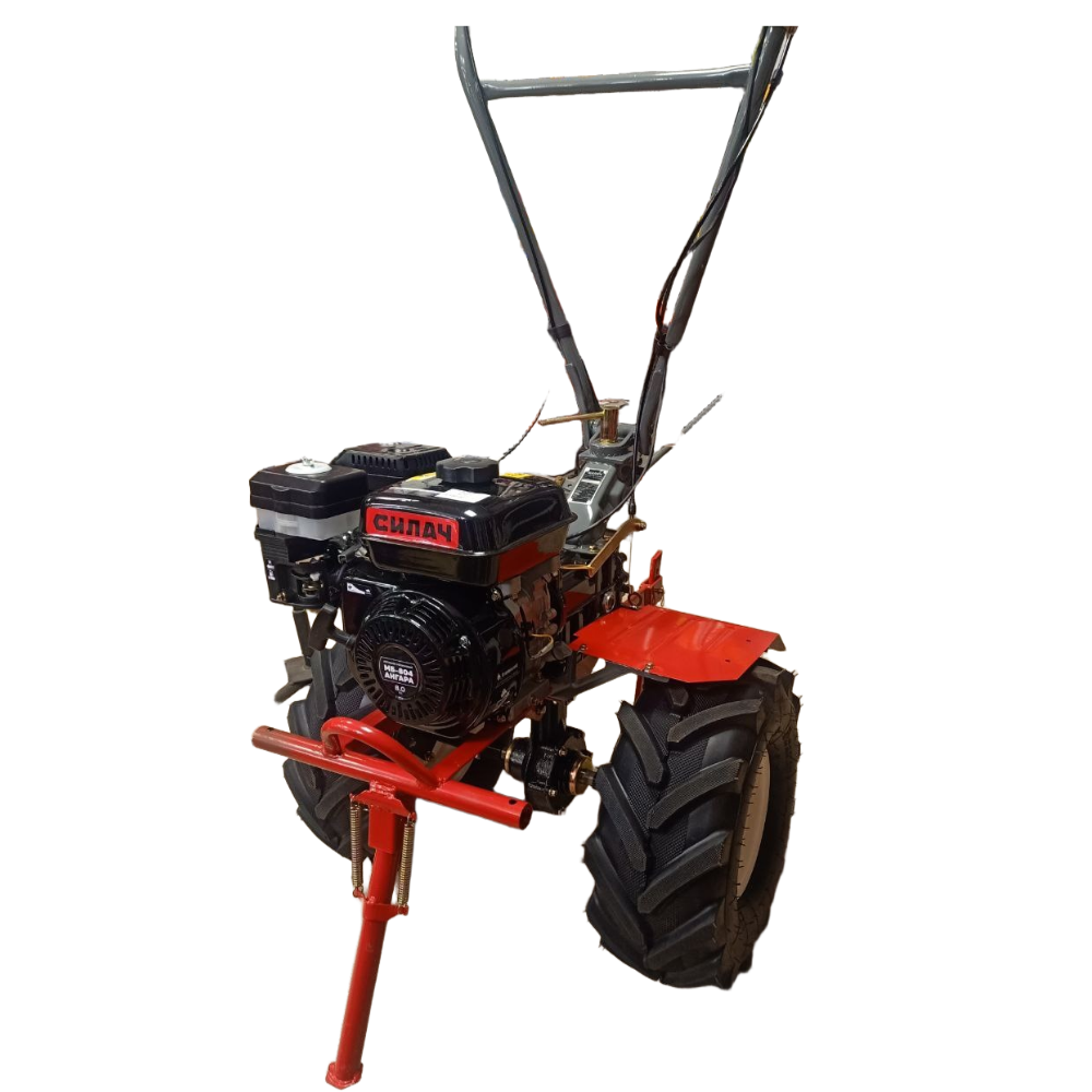 Мощный бензиновый мотоблок Силач МБ-804 Ангара с передачей заднего хода. Тип трансмиссии - редукторный. Предназначен для рыхления и культивирования, а при использовании дополнительного навесного оборудования спектр применения культиватора значительно расширяется. Дополнительная передача пониженного переднего хода позволяет рыхление особо твердого грунта при минимальном износе трансмиссии, а также проход в особо сложных с точки зрения габаритов участках.