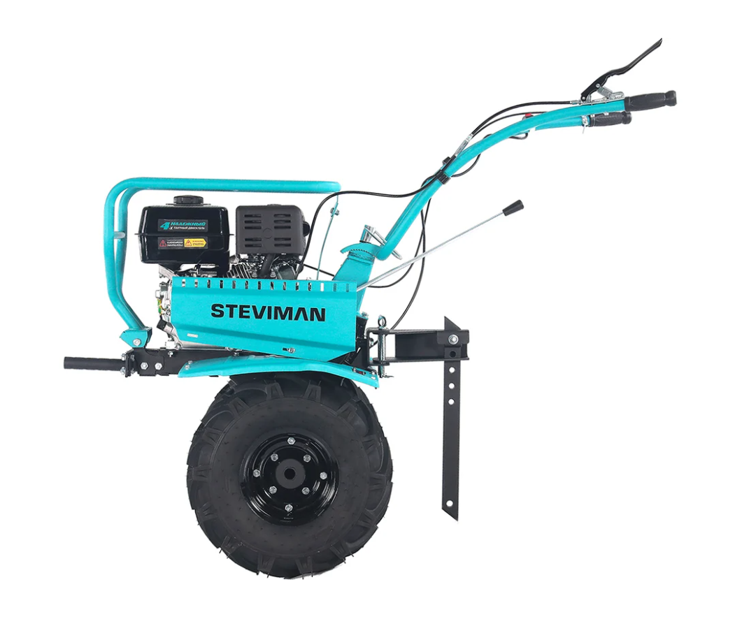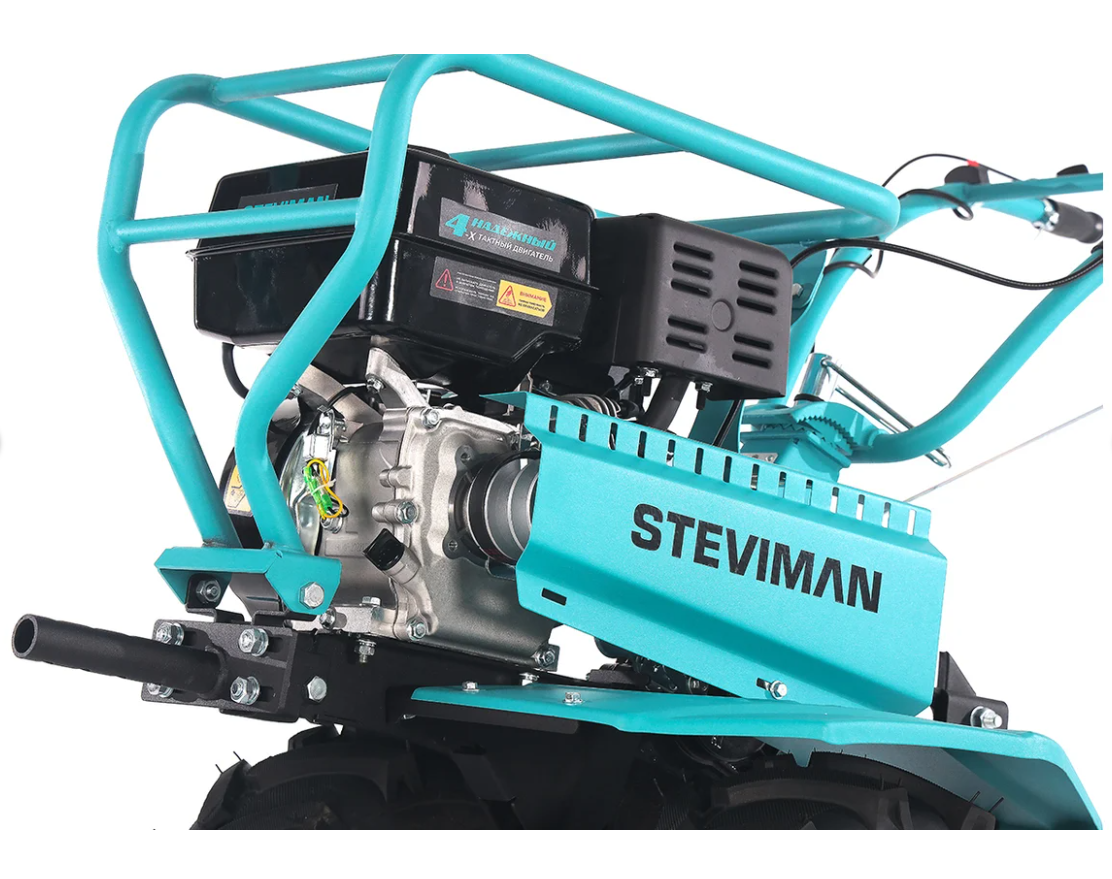 Мотоблок оснащен продуманной системой из шести скоростей: четыре передние передачи для различных условий работы и две задние для удобного маневрирования. Широкий диапазон скоростей позволяет точно настроить темп работы в зависимости от типа почвы, её плотности и характера выполняемых задач. Две задние скорости существенно облегчают развороты и движение задним ходом на ограниченных участках. Российское производство бренда STEVIMAN гарантирует доступность сервисного обслуживания и запчастей. На мотоблок предоставляется гарантия 1 год, подтверждающая высокое качество техники.