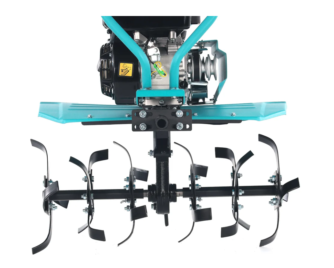 Фрезы диаметром 35 см обеспечивают качественное рыхление почвы на глубину до 15 см, что идеально подходит для подготовки грунта под посадку различных культур. Ширина обработки составляет 85 см, позволяя захватывать внушительную площадь за один проход и существенно экономить время на обработке участка. Фрезы тщательно перемешивают почву, эффективно разбивают крупные комья земли и создают однородную структуру грунта. Такие параметры делают мотоблок универсальным инструментом для подготовки грядок, междурядной обработки и глубокой культивации на приусадебных и дачных участках любой площади.