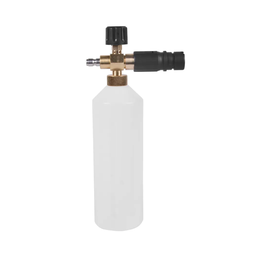 Профессиональный пеногенератор в сочетании со специализированными шампунями создает густую пену, способную справиться даже с самыми сложными загрязнениями – от масляных пятен до копоти и соляных разводов.