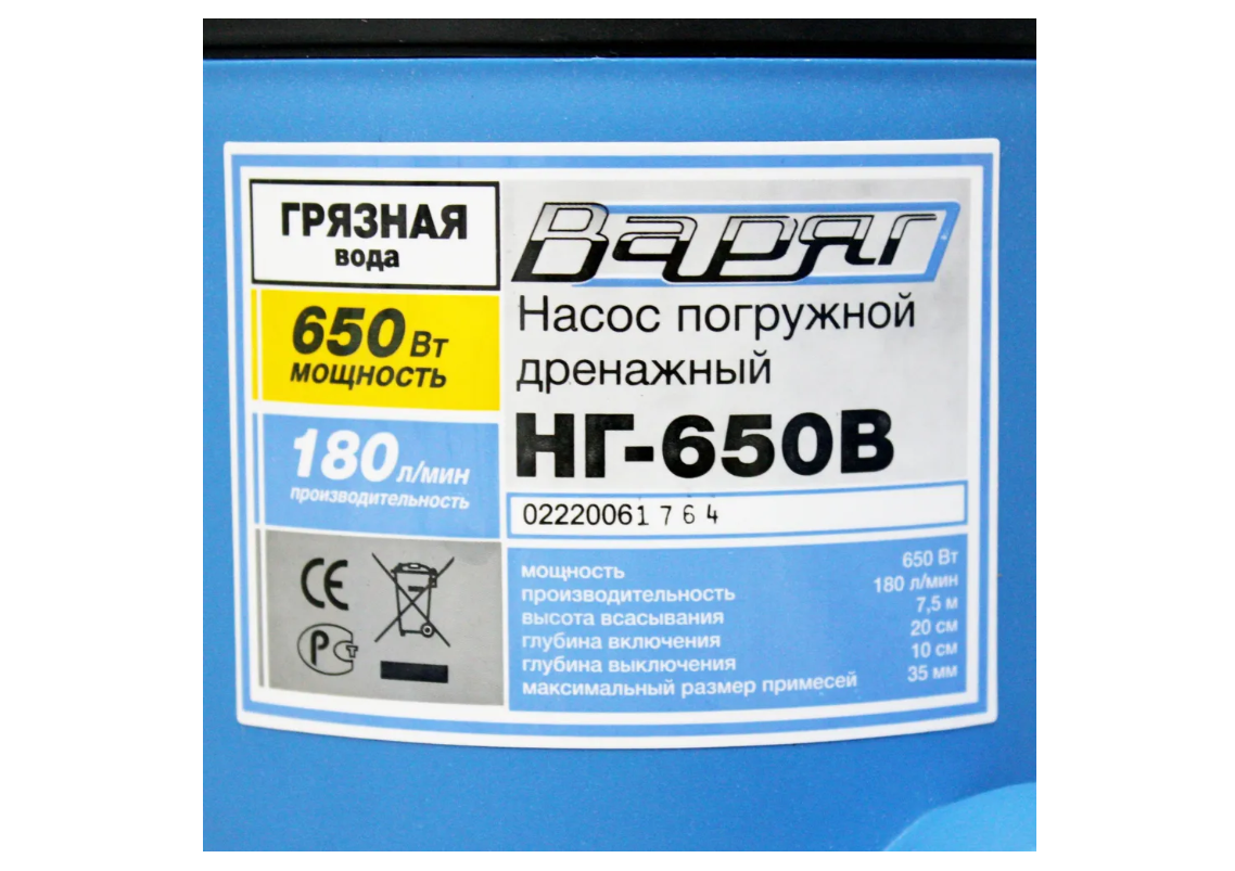 Дренажный насос Варяг НГ- 650В– качественный и мощный погружной насос от бренда «Варяг». Один из самых популярных типов насосов в коммунальных и загородных хозяйствах.