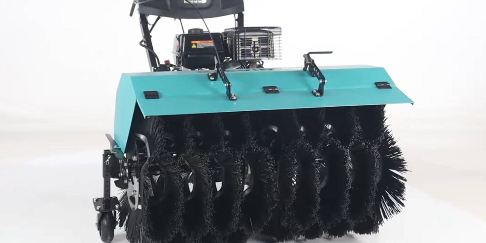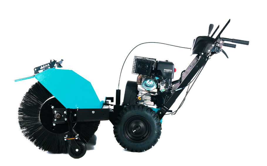 Ширина щетки достигает 110 см, а диаметр составляет 62 см – такие параметры позволяют быстро и качественно очищать обширные площади за минимальное время. Модель комплектуется фрикционной трансмиссией с 6 передачами вперед и 2 назад, что дает возможность точно регулировать скорость работы в зависимости от типа поверхности и характера загрязнения. Система управления поворотом щетки через эргономичную рукоятку обеспечивает высокую маневренность и комфорт оператора.