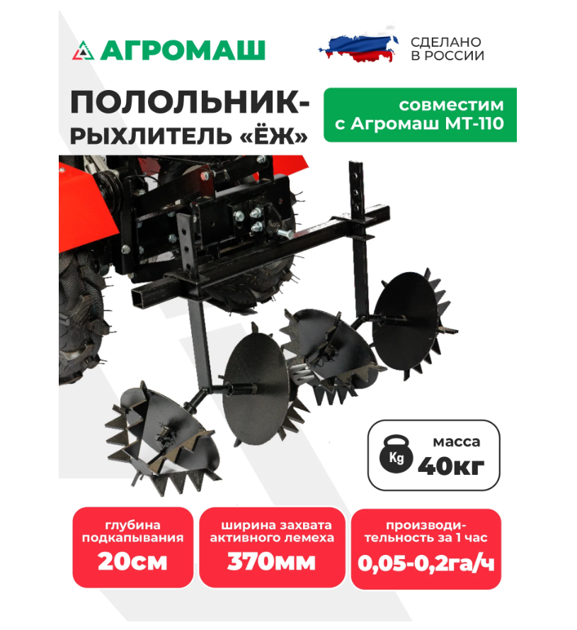 - Для агрегатирования с мотоблоком требуется соответствующее сцепное устройство (сцепка), которое не входит в комплект и приобретается отдельно.