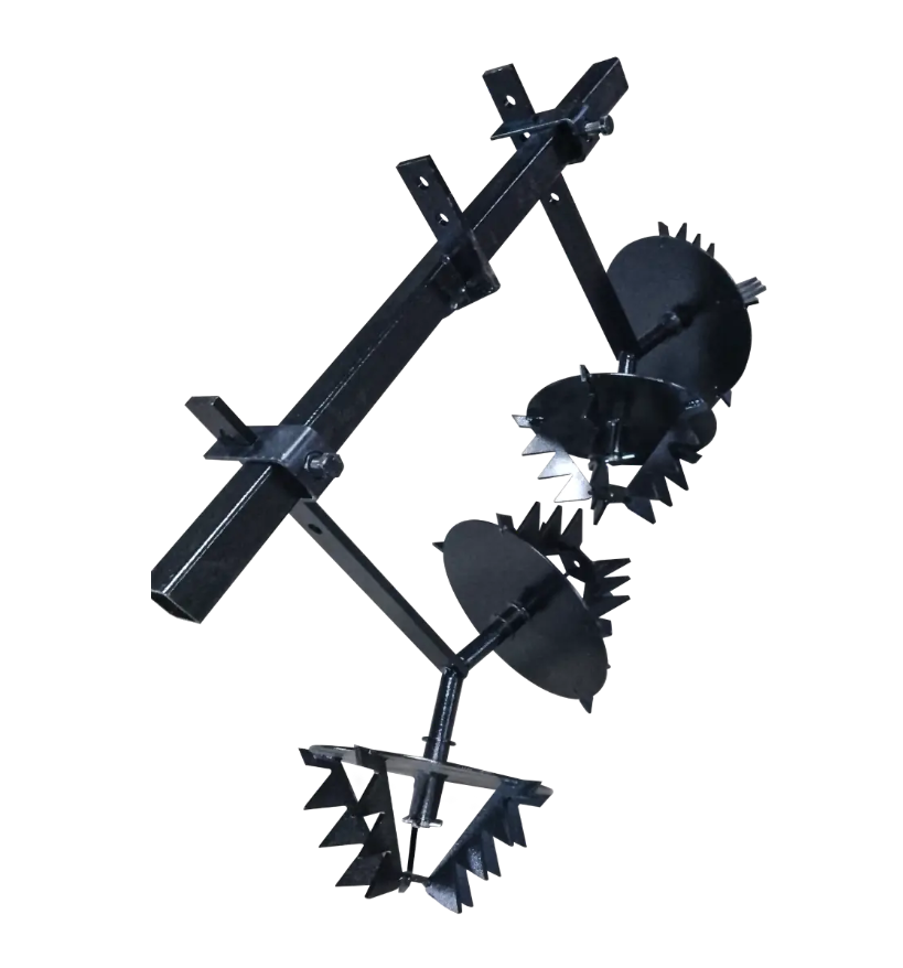 - Рыхление: Вращающиеся игольчатые диски разрушают почвенную корку, улучшают аэрацию (доступ воздуха к корням).