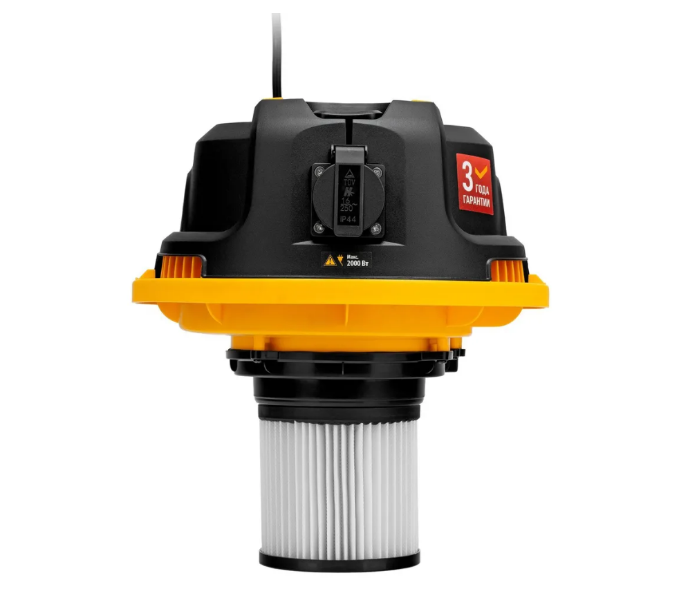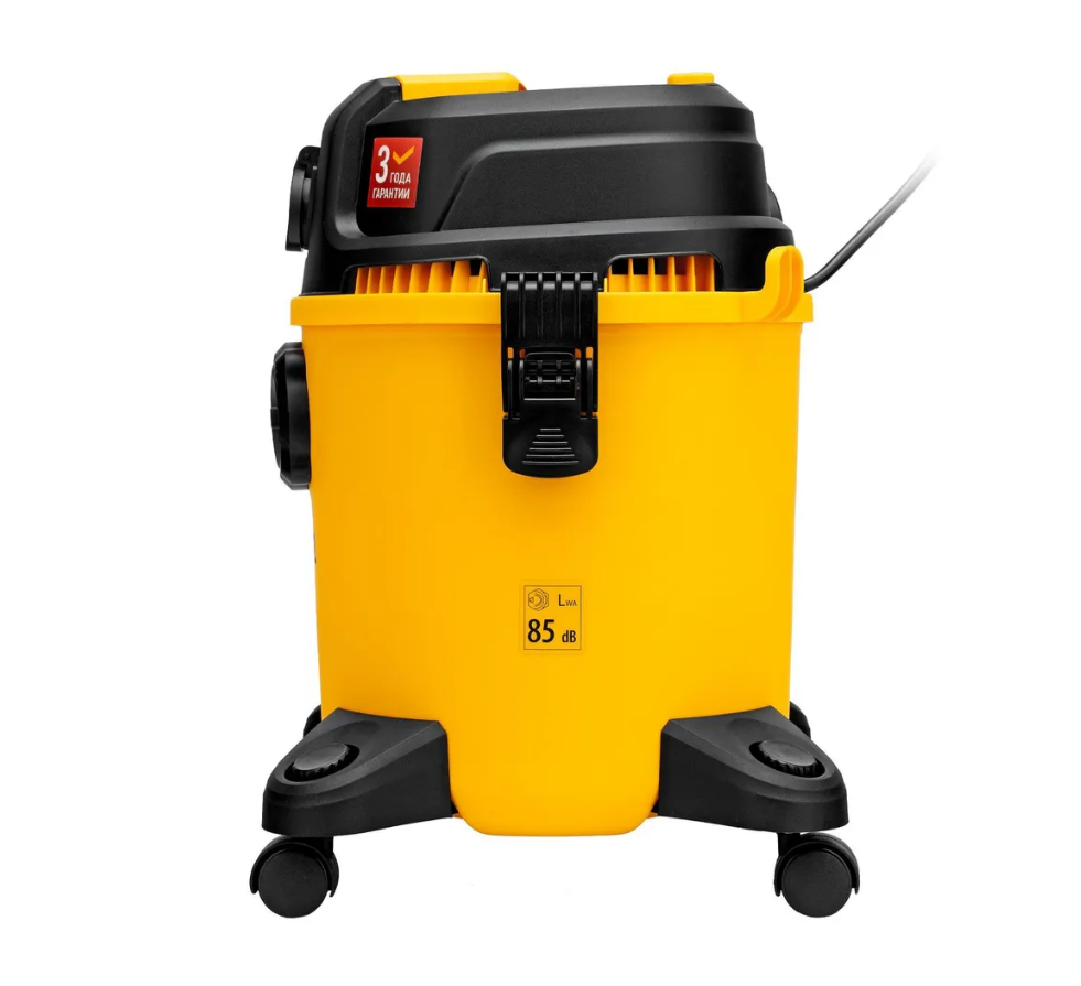 мощностью 1400 Вт, с баком объемом 20 л и шлангом длиной 3 м, оснащен розеткой с автосинхронизацией и предназначен для уборки бетонной, кирпичной пыли, опилок, стружки и других твердых отходов. Функция влажной уборки позволяет собирать воду с пола. К пылесосу можно подключить электроинструмент, чтобы минимизировать количество пыли, образующейся в результате пиления, сверления, фрезерования. Техника используется во время проведения строительных и ремонтных работ, будет полезен для поддержания чистоты в мастерской, гараже, производственном помещении.