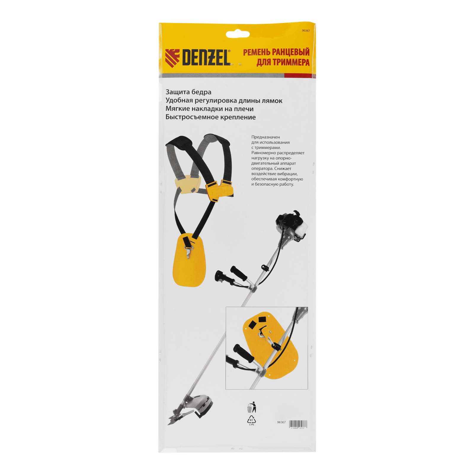 Ранцевый ремень Denzel с защитой бедра используется с бензиновыми триммерами Denzel. Двухплечевая подвесная система равномерно распределяет вес инструмента, снижая нагрузку на спину, поэтому она подходит для профессиональных работ на участках большой площади.