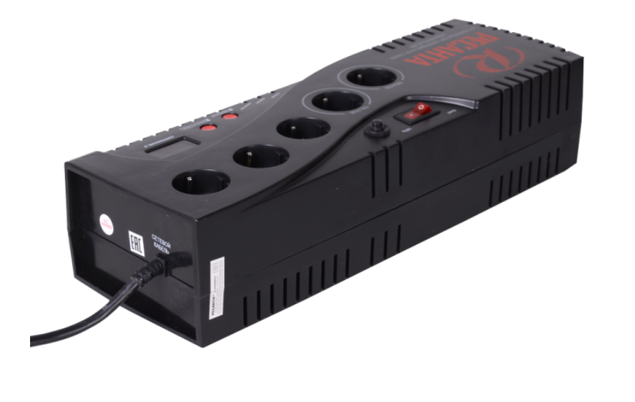 Модель оснащена 5 электрическими розетками, включая 2 разъема с функцией обхода (байпас), позволяющей подавать электричество напрямую, минуя стабилизацию. Корпус устройства обладает повышенной прочностью и надежно предохраняет внутреннюю начинку от внешних воздействий (защита класса IP20), что делает его оптимальным решением для домашнего пользования. Небольшие размеры обеспечивают удобство размещения в любом удобном месте интерьера.