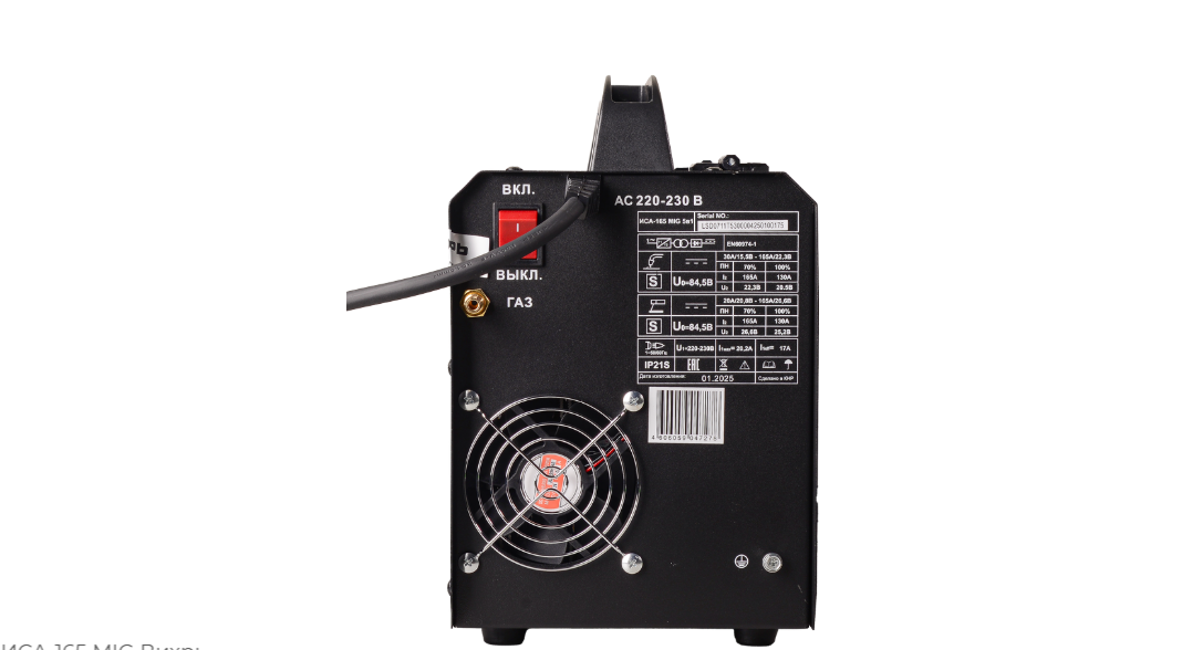 Полуавтомат ИСА-165 MIG Вихрь может работать от стандартной бытовой электросети напряжением 220–230 В даже при значительных колебаниях напряжения (в пределах 155–280 В), что делает его подходящим для использования как в городских условиях, так и на объектах с нестабильным энергоснабжением.