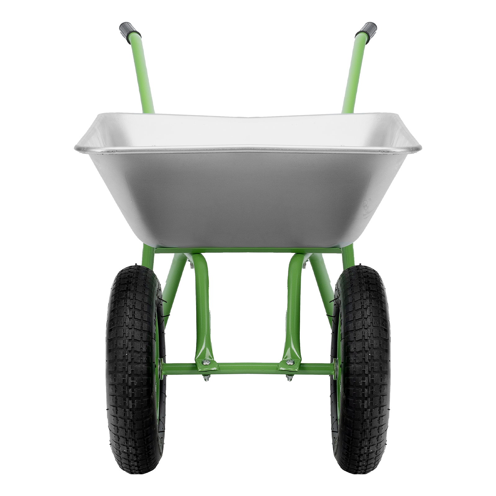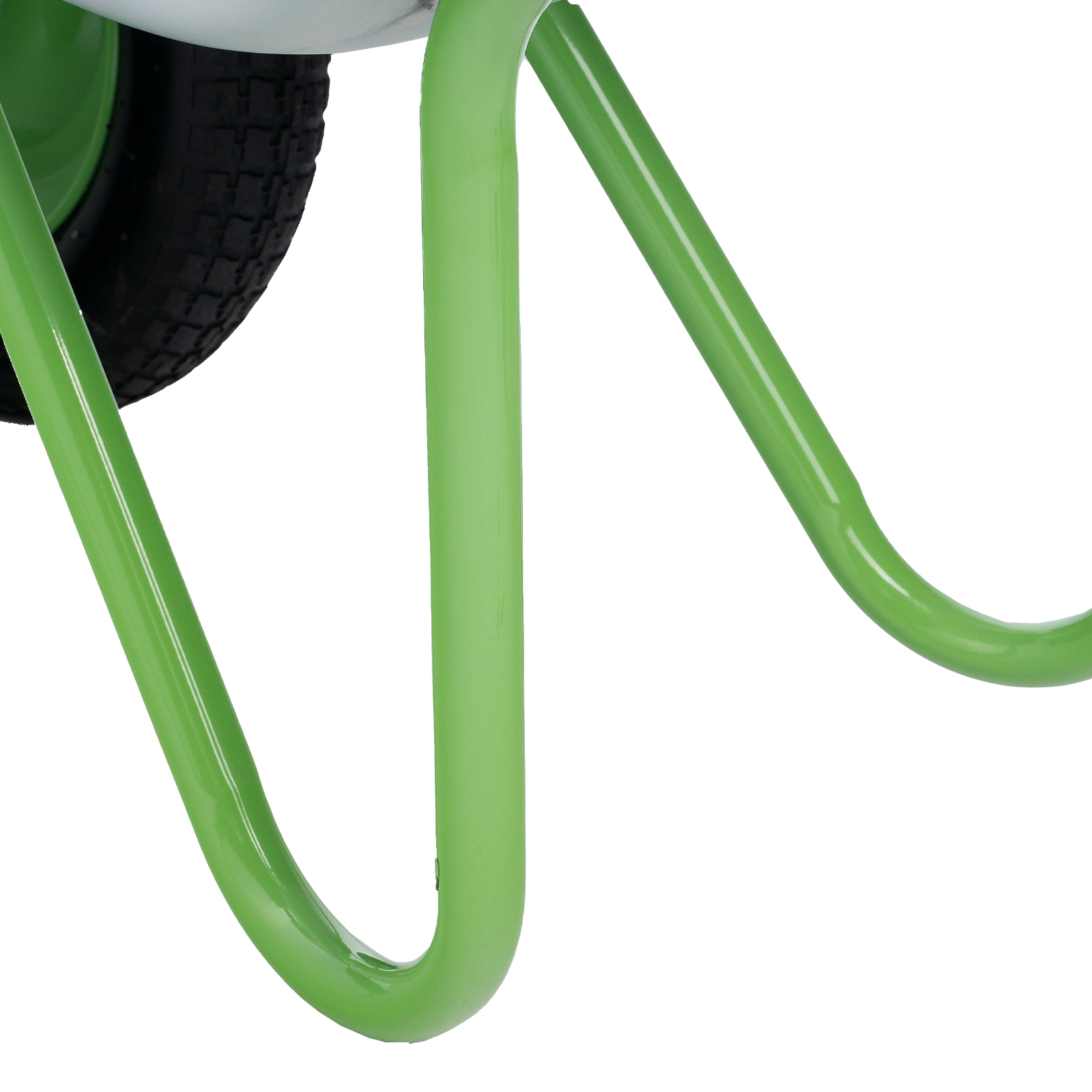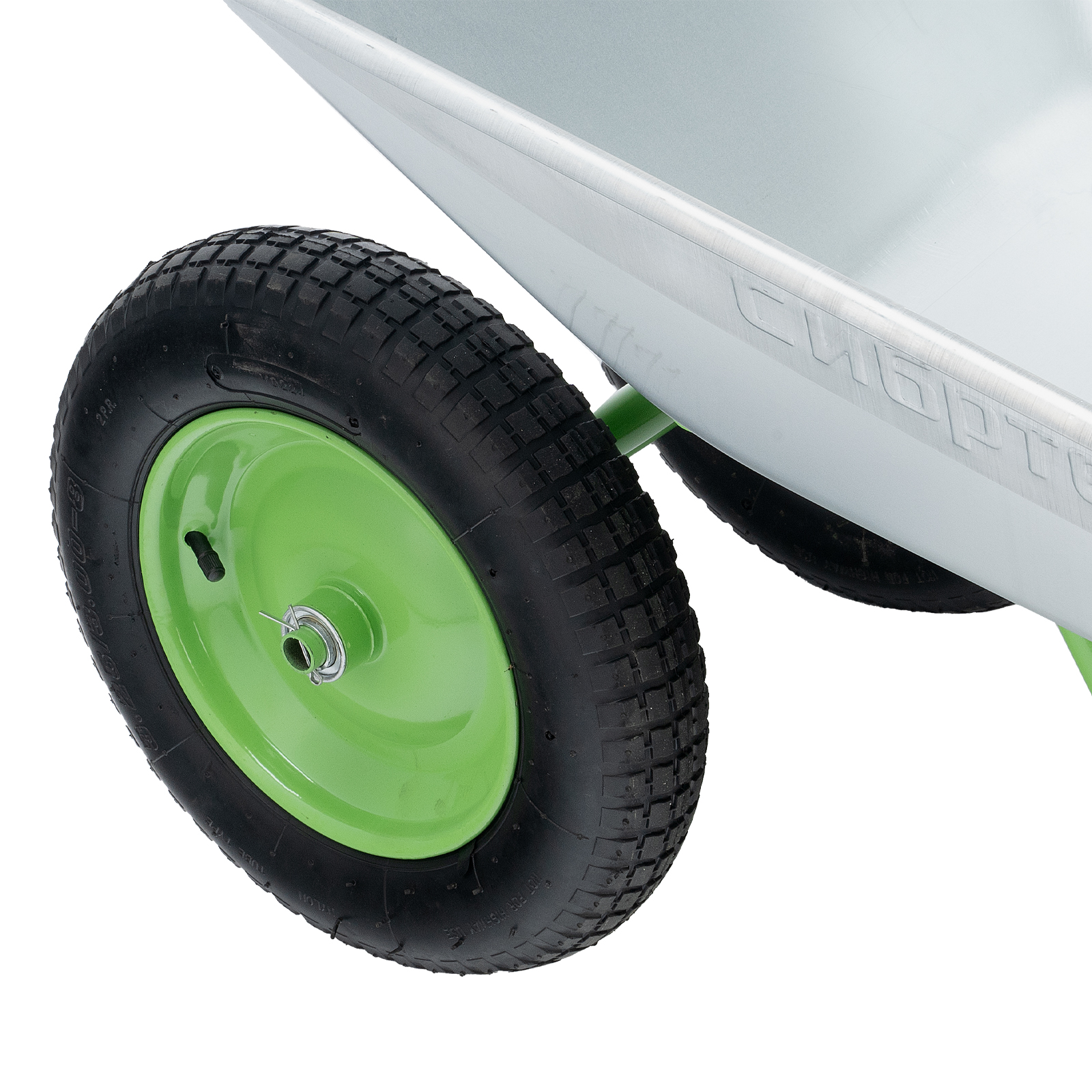 - Удобное перемещение даже по неровной поверхности — пневмоколеса с камерами и резиновыми шинами повышают плавность хода, каждое колесо оснащено 2 шариковыми подшипниками, облегчающими вращение и препятствующими износу.