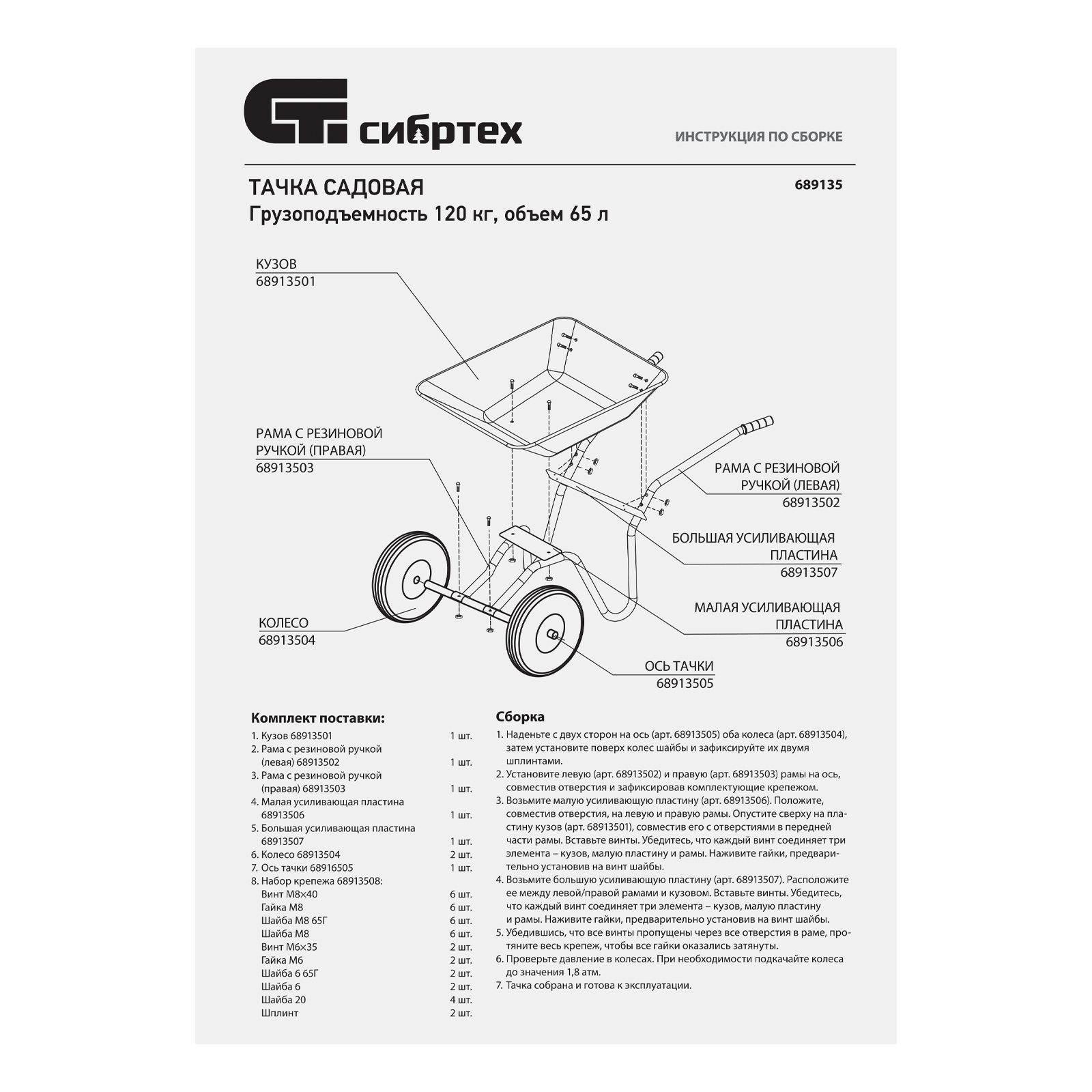 Двухколесная садовая тачка Сибртех грузоподъемностью 120 кг, с объемом кузова 65 л, служит для транспортировки легких грузов при выполнении садовых и сельскохозяйственных работ. С ее помощью можно привести в порядок территорию и убрать листья, собрать урожай и выполнить другие работы на загородном участке. Два колеса обеспечивают высокую грузоподъемность, а также устойчивость во время движения по прямой и на поворотах. Вес груза распределяется равномерно, поэтому тачка не проваливается даже в рыхлый грунт.