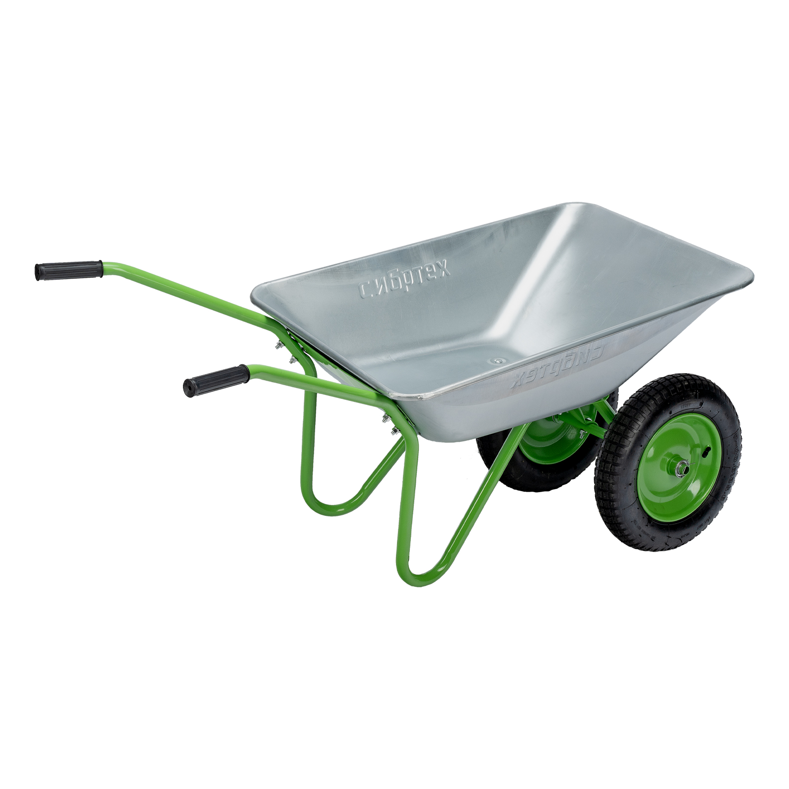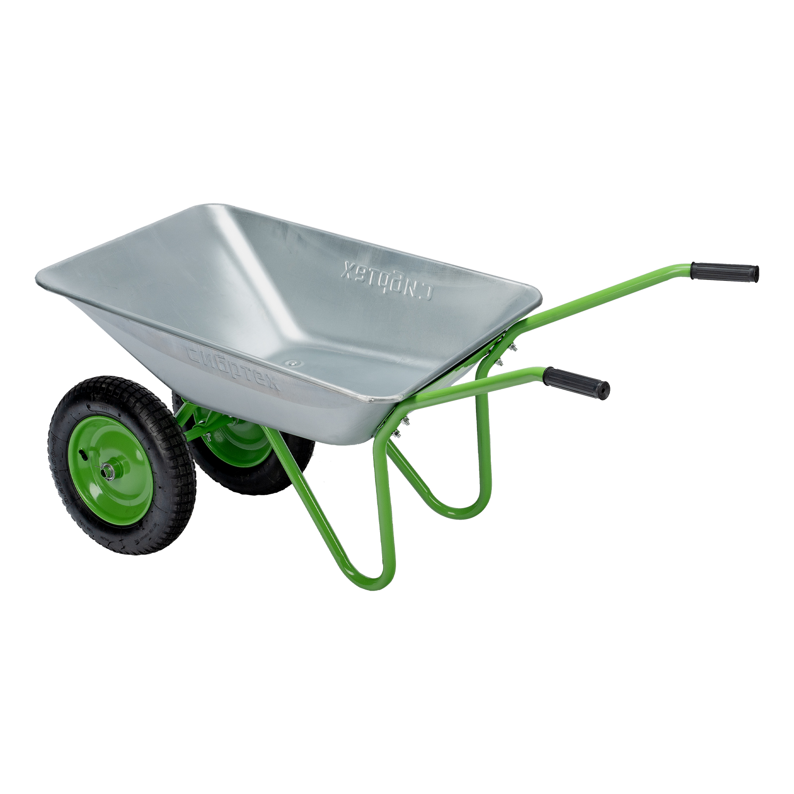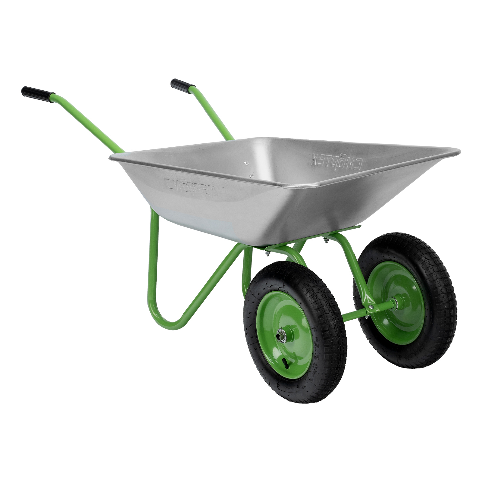 - Антикоррозийная защита — стальное корыто оцинковано, а рама, опора и колесные диски покрыты порошковой эмалью.