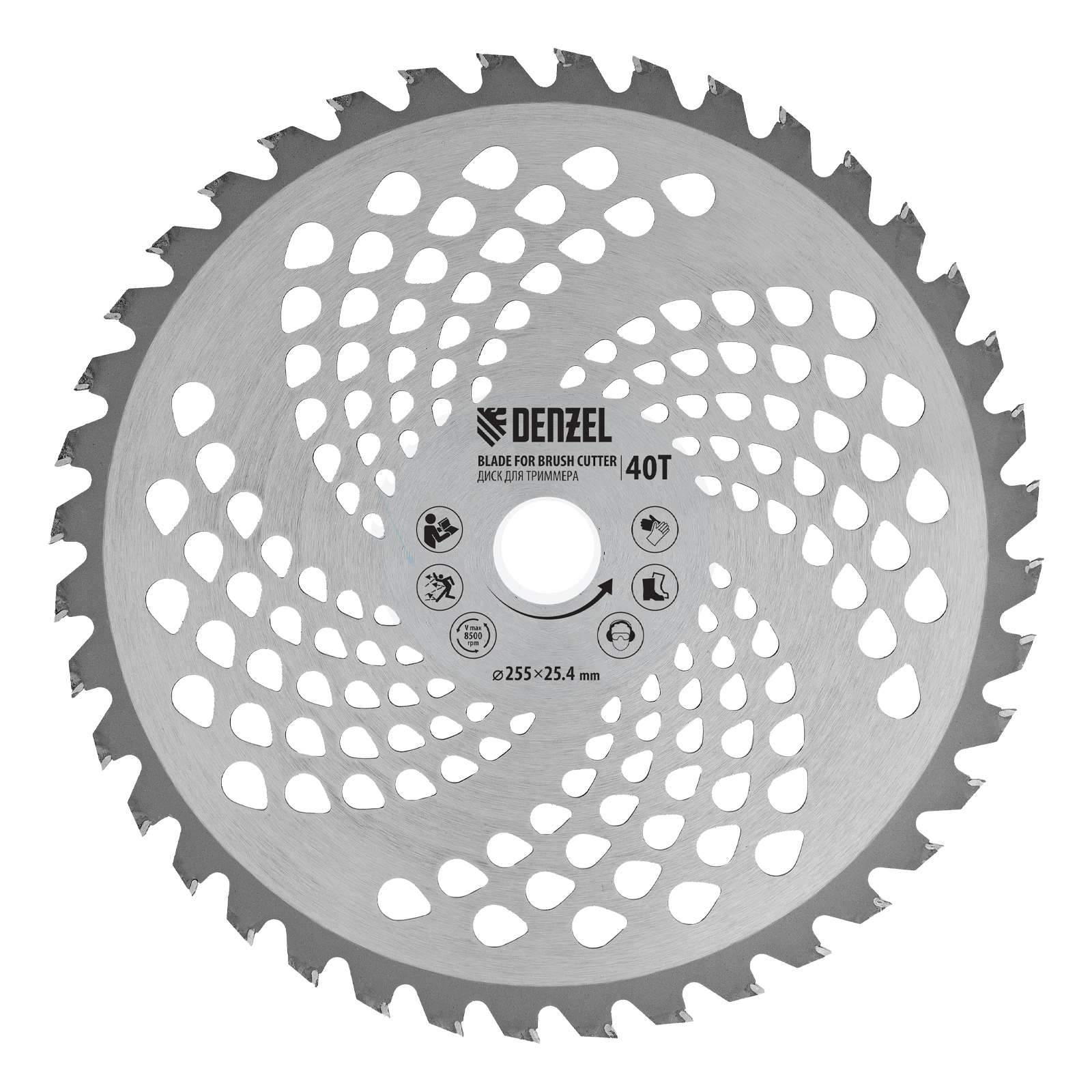 - Дополнительные возможности — можно приобрести и установить на триммер диск Denzel 96323 для быстрого удаления растительности с жесткими стеблями или 96328 для скашивания молодых побегов кустарника диаметром до 3 мм.