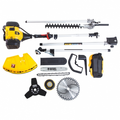Мультифункциональный бензиновый триммер Denzel DGT-52S-MAX с двигателем объемом 52 куб. см и разъемной штангой предназначен для обработки газонов, избавления от сорняков, скашивания молодой травы, а также для борьбы с зарослями. Выдерживает интенсивные нагрузки, поэтому подойдет не только владельцам дачных участков, но и сотрудникам сельскохозяйственных организаций и коммунальных служб.