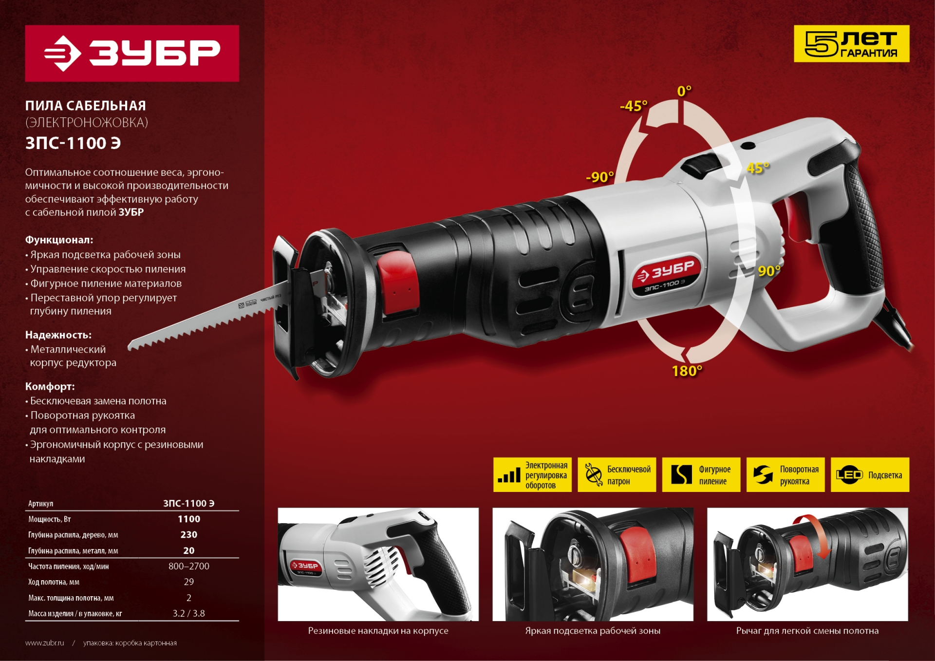 Универсальный инструмент для плотницкой, кровельной, отделочной, слесарной, монтажной, а также садовой работы. Он отлично справится с пилением и резкой древесины, металла и пластика. Благодаря своему оптимальному соотношению веса и габаритов, а также эргономичному исполнению эта пила удобна в обращении и подходит для различного применения. Высокопроизводительный двигатель мощностью 1100Вт обеспечивает плавное начало пиления и гарантирует оптимальную эффективность обработки.Внимание! Начиная с даты производства 08.2022, инструмент поставляется в красном цвете вместо серого. Без изменения уровня качества