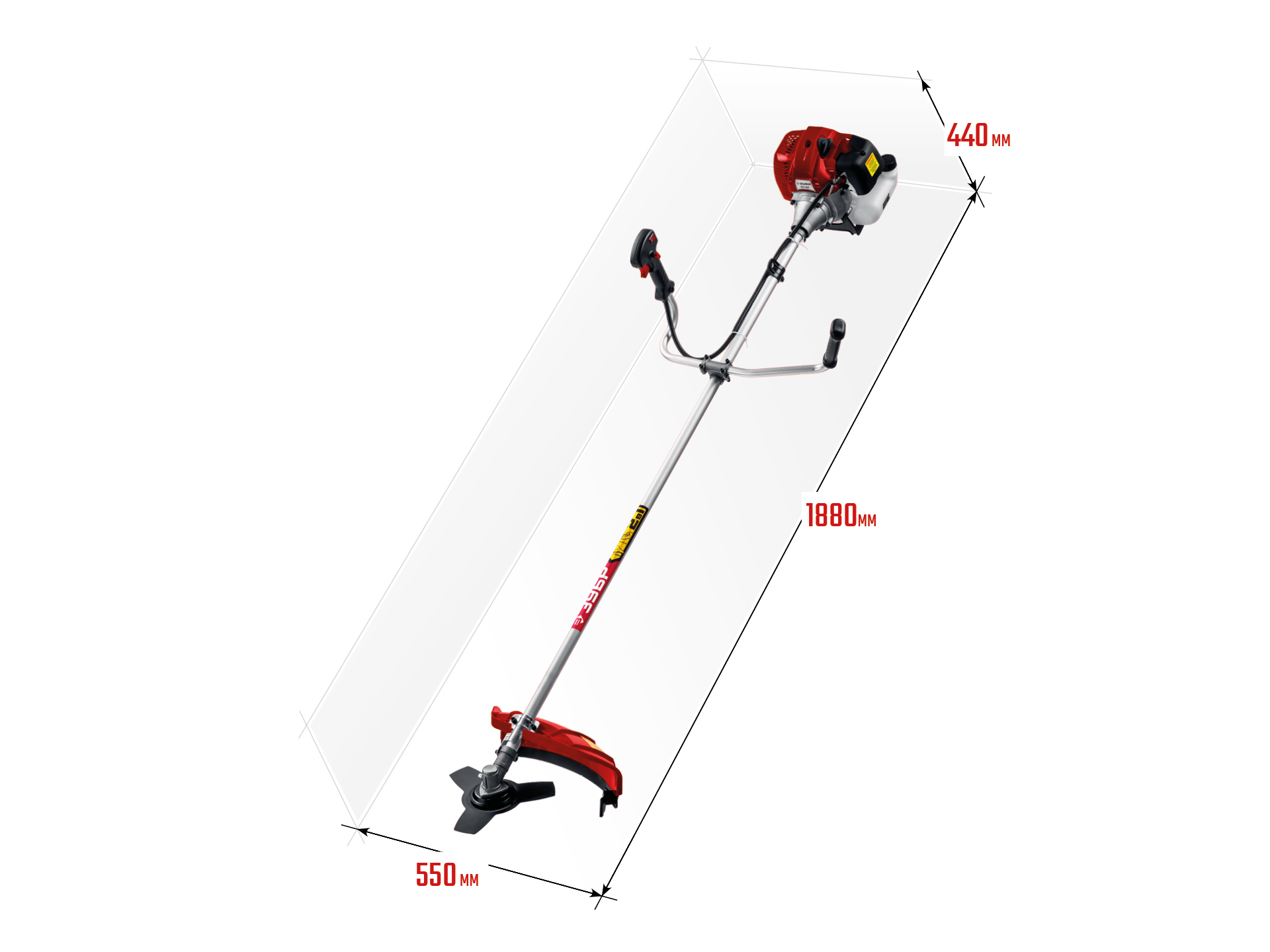 Для кошения травы (с приводом режущего инструмента от двигателя внутреннего сгорания). Изделие предназначено для эксплуатации только вне помещений
