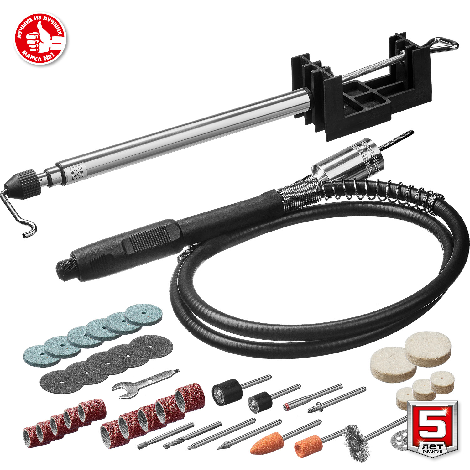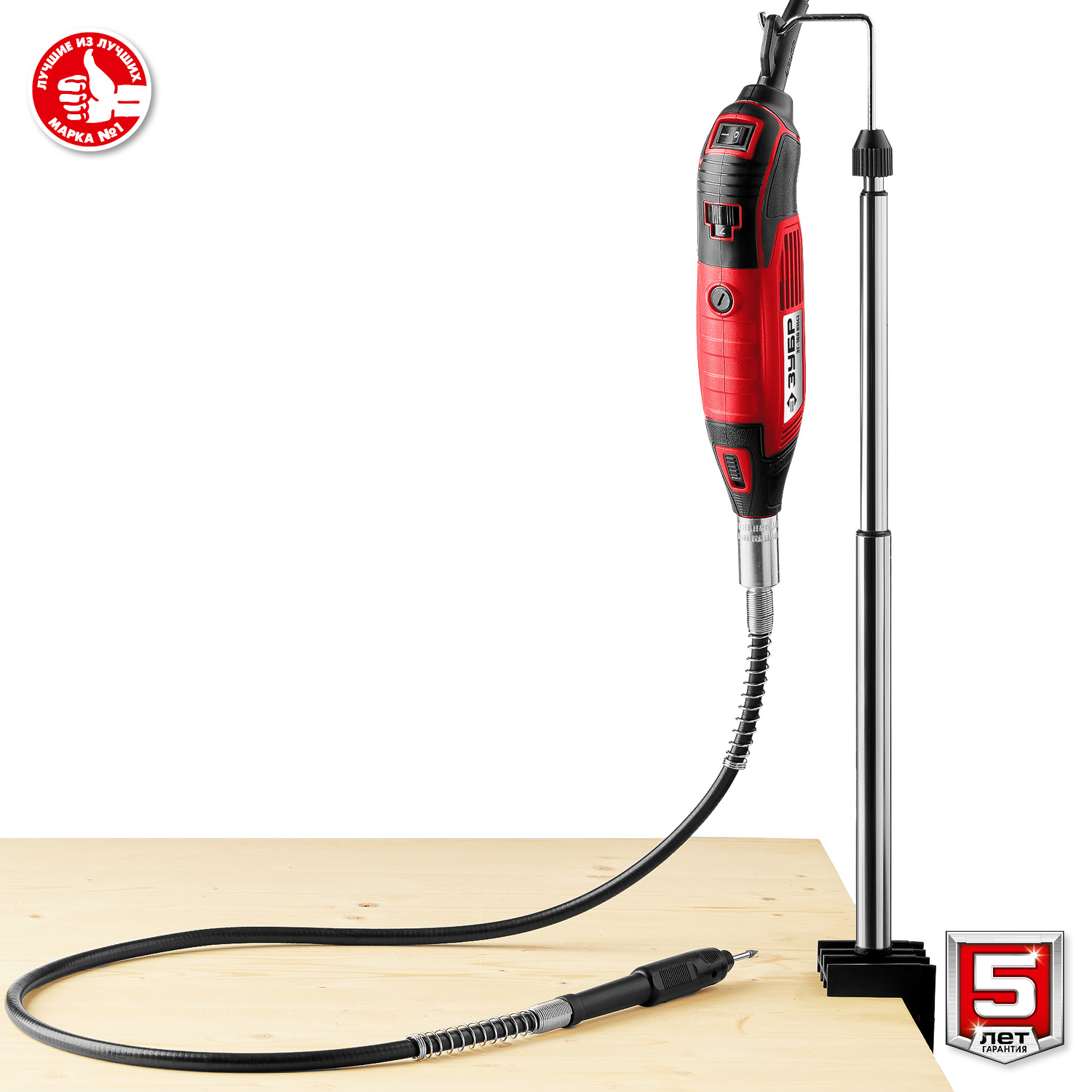 - Гибкий вал и штатив с кронштейном облегчают нанесение гравировки, позволяя использовать естественный хват ручки