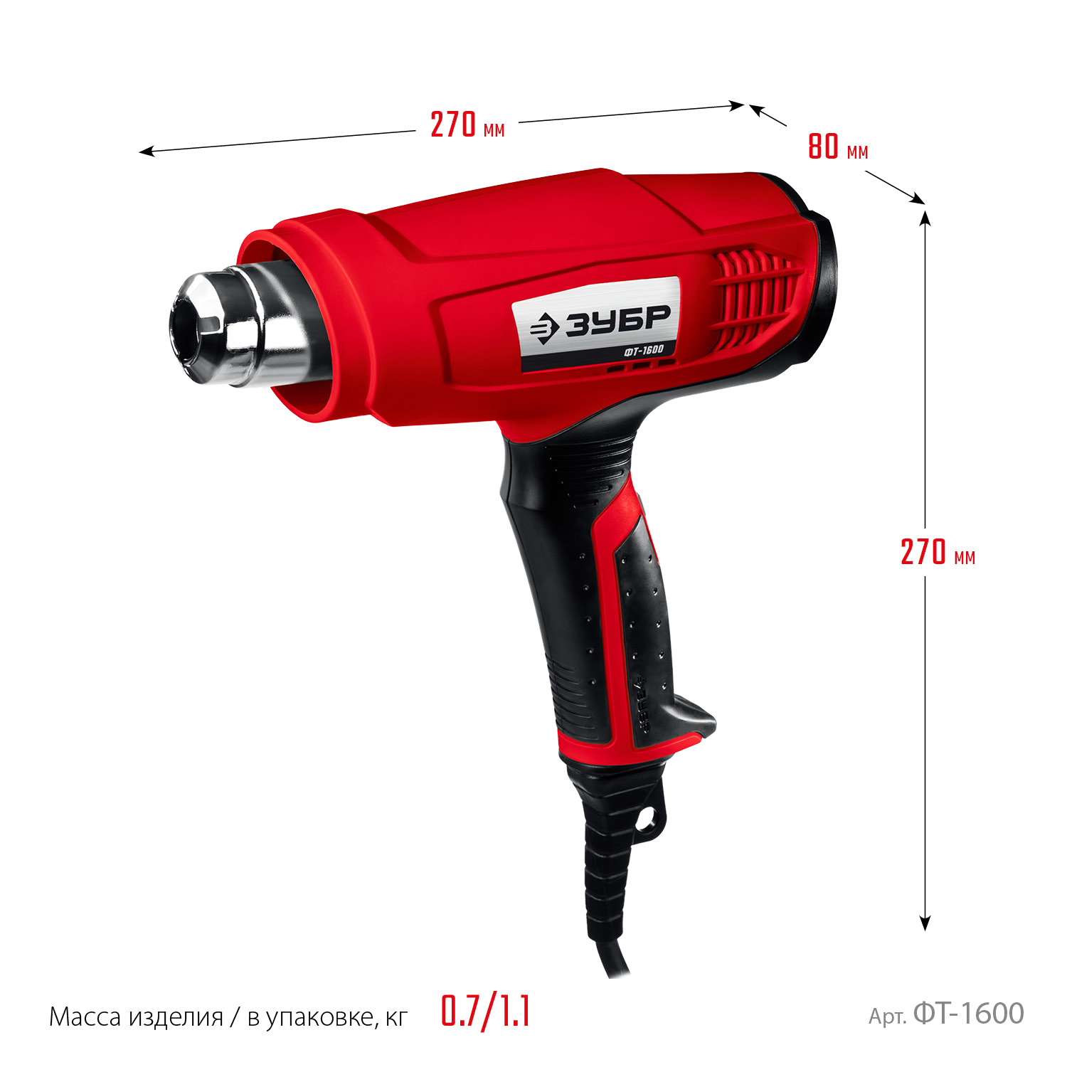 - 3 различные насадки в комплекте позволяют выполнять любую работу – от точечного нагрева до сушки больших площадей