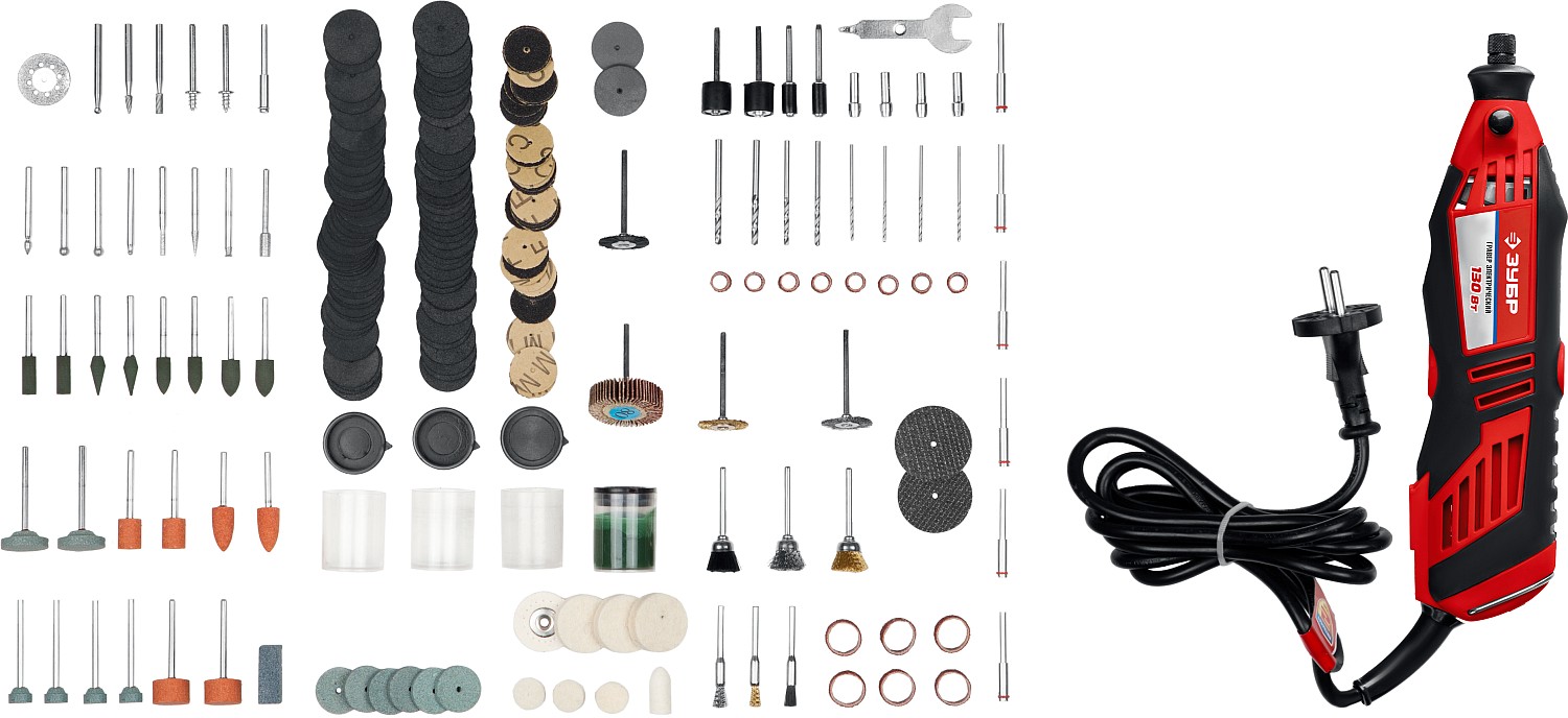 - Комплектация набора оптимальна подобрана для осуществления высокоточных полировальных, шлифовальных, заточных и отрезных работ в домашних условиях