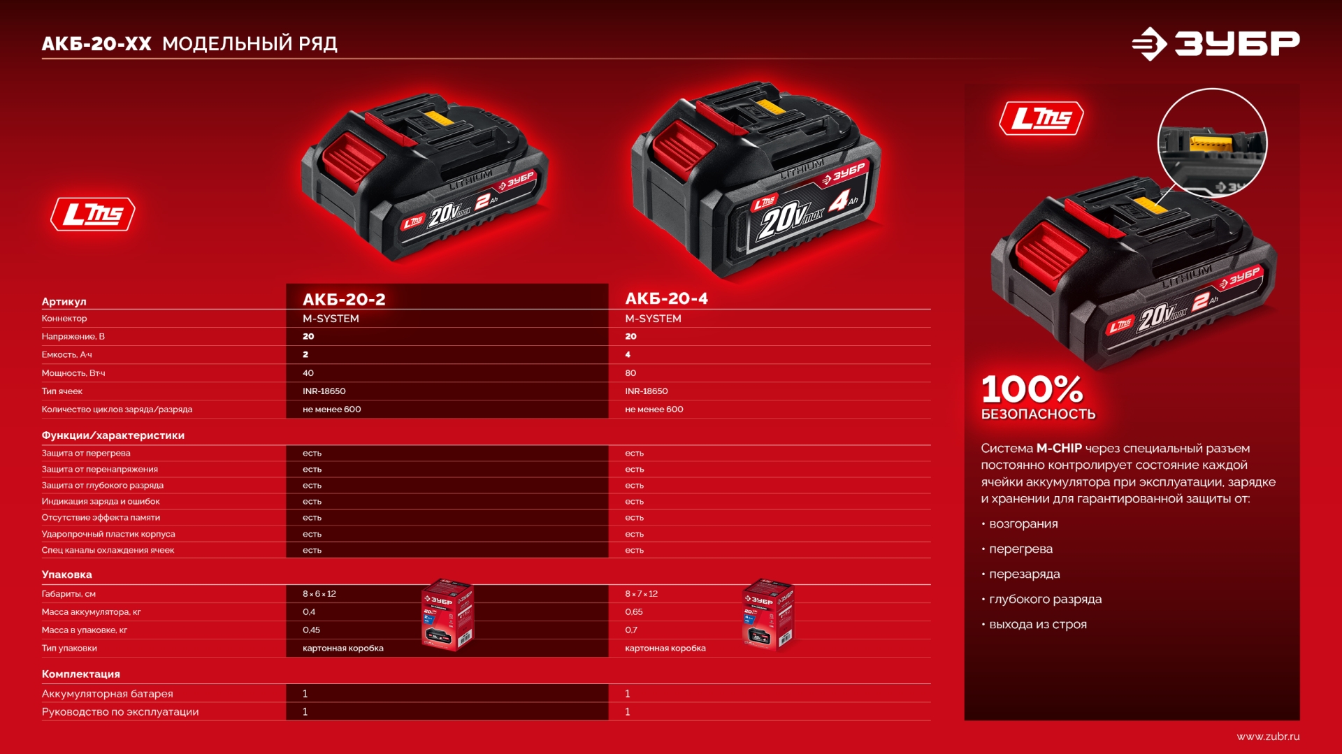 - Система М-CHIP через специальный разъем постоянно контролирует состояние каждой ячейки аккумулятора при эксплуатации, зарядке и хранении для гарантированной защиты от: