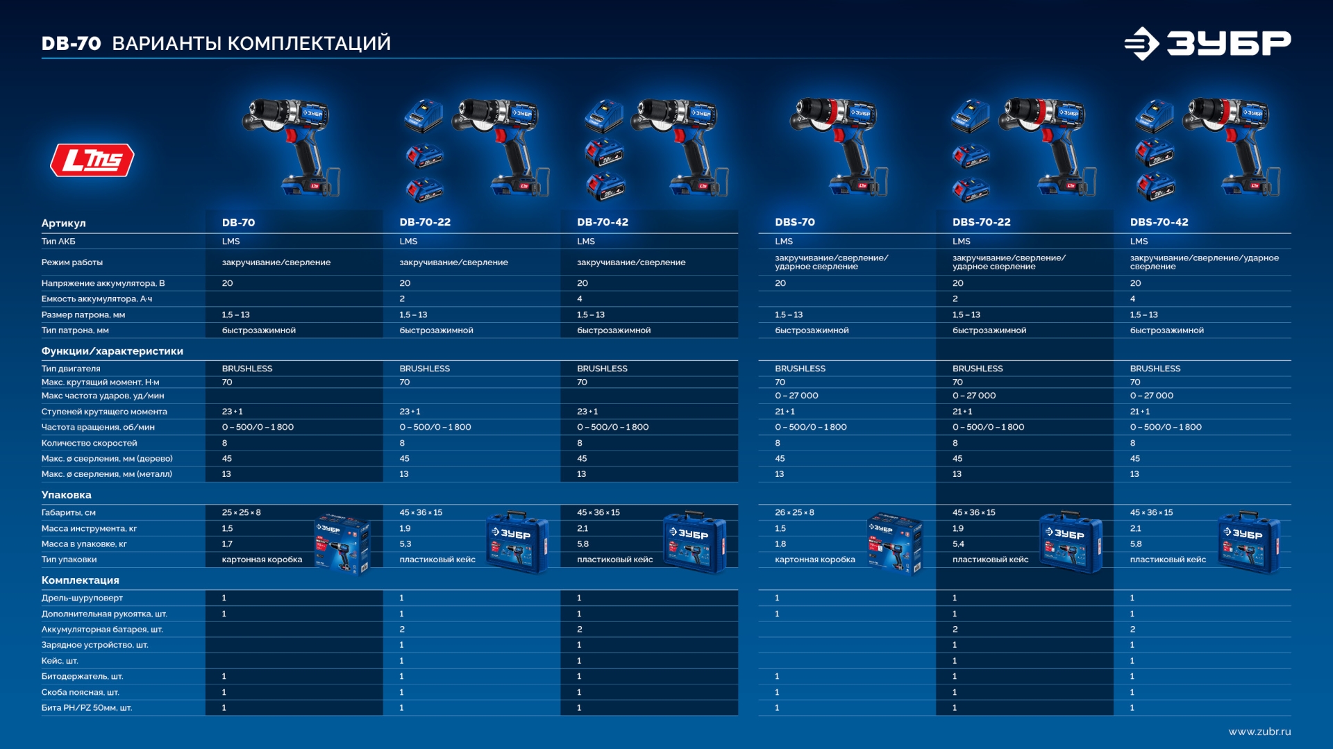 Высокотехнологичная модель в новой линейке аккумуляторного инструмента ЗУБР серии LMS Дрель-шуруповерт профессионального уровня с передовым BRUSHLESS двигателем.