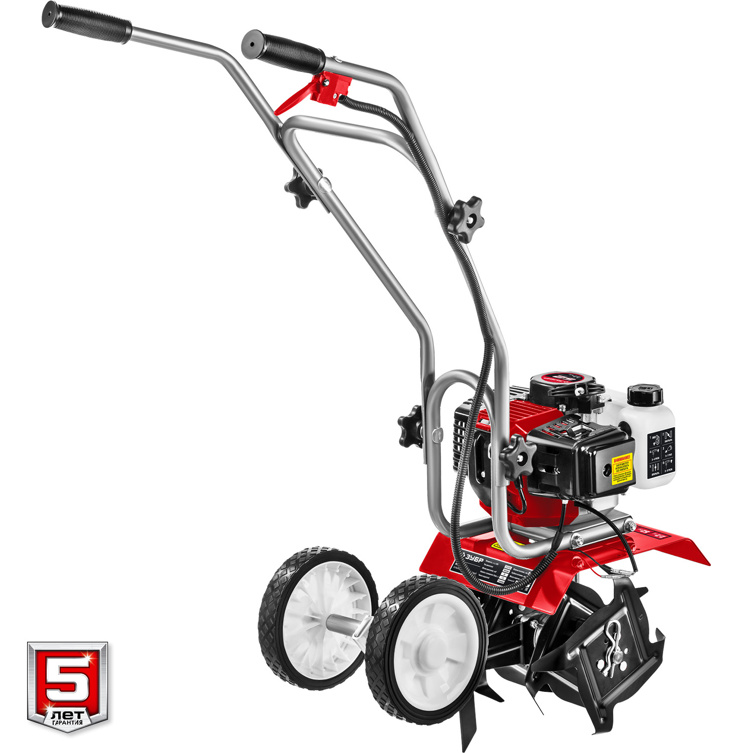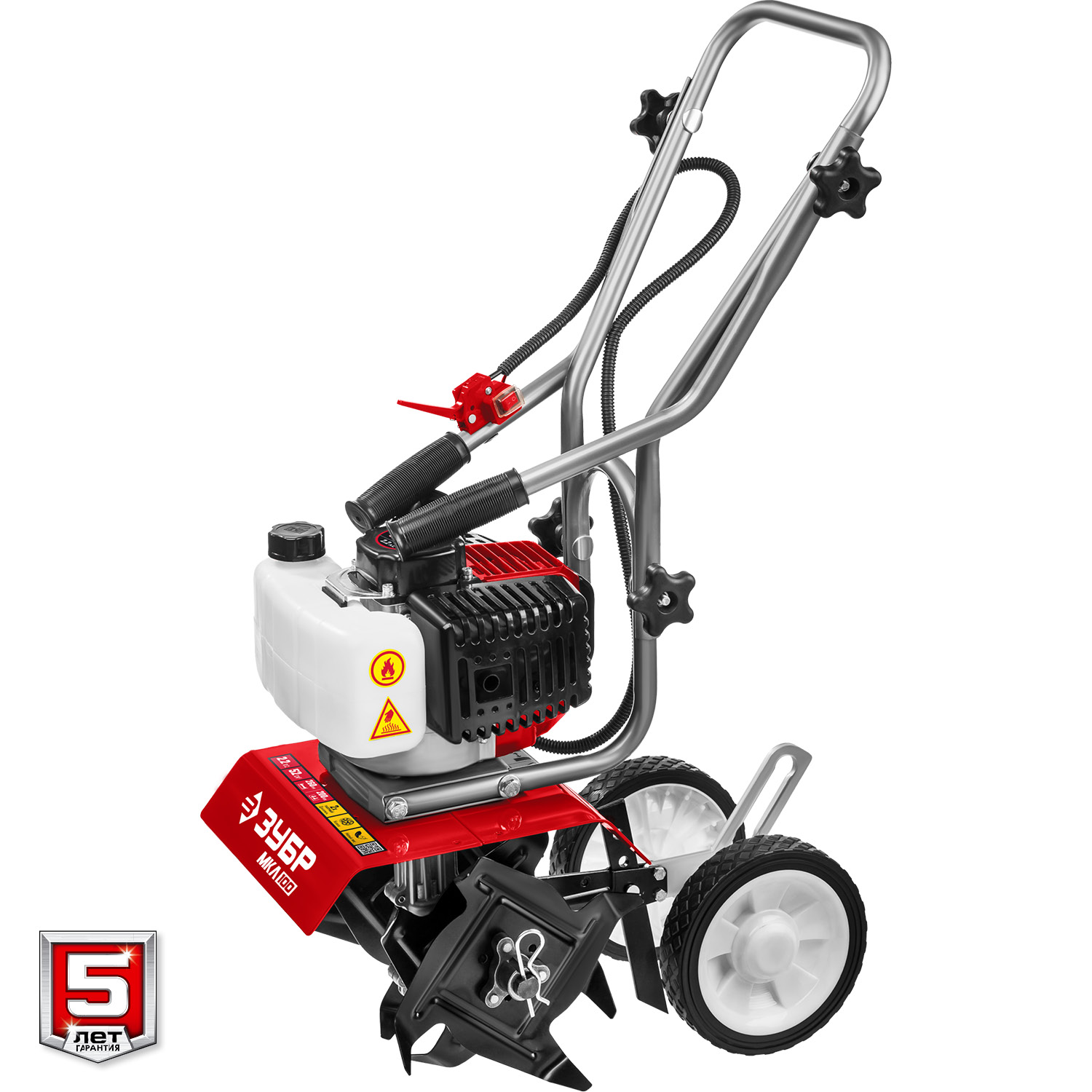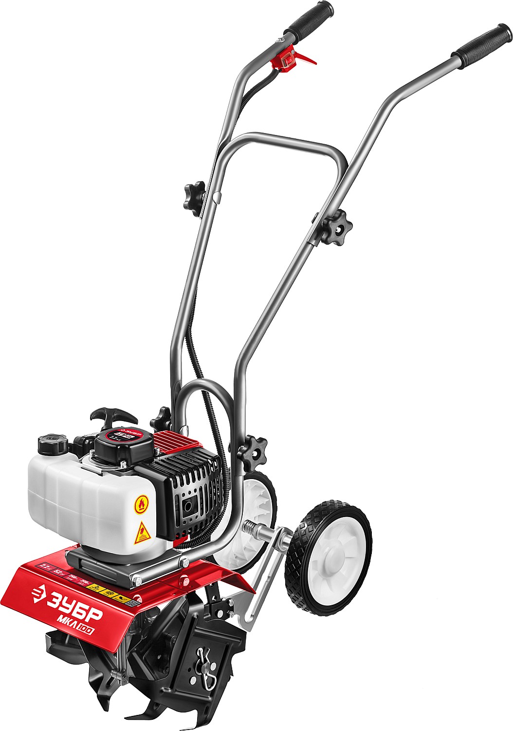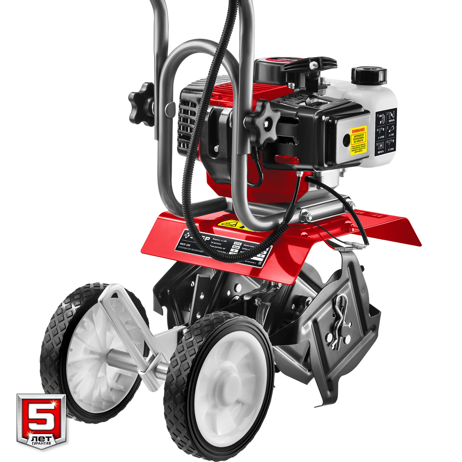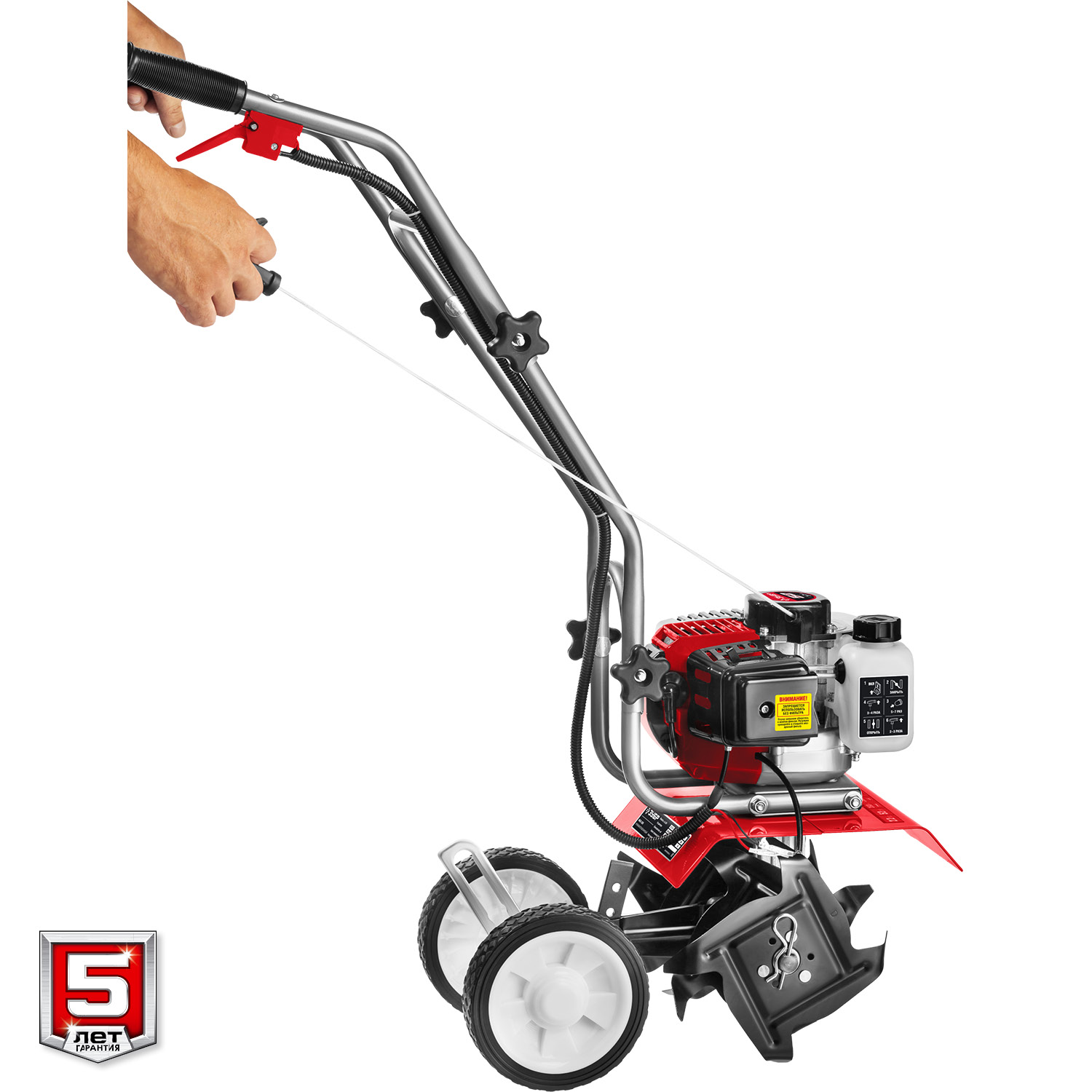 - Транспортировочное колесо позволяет с легкостью перевозить культиватор по участку