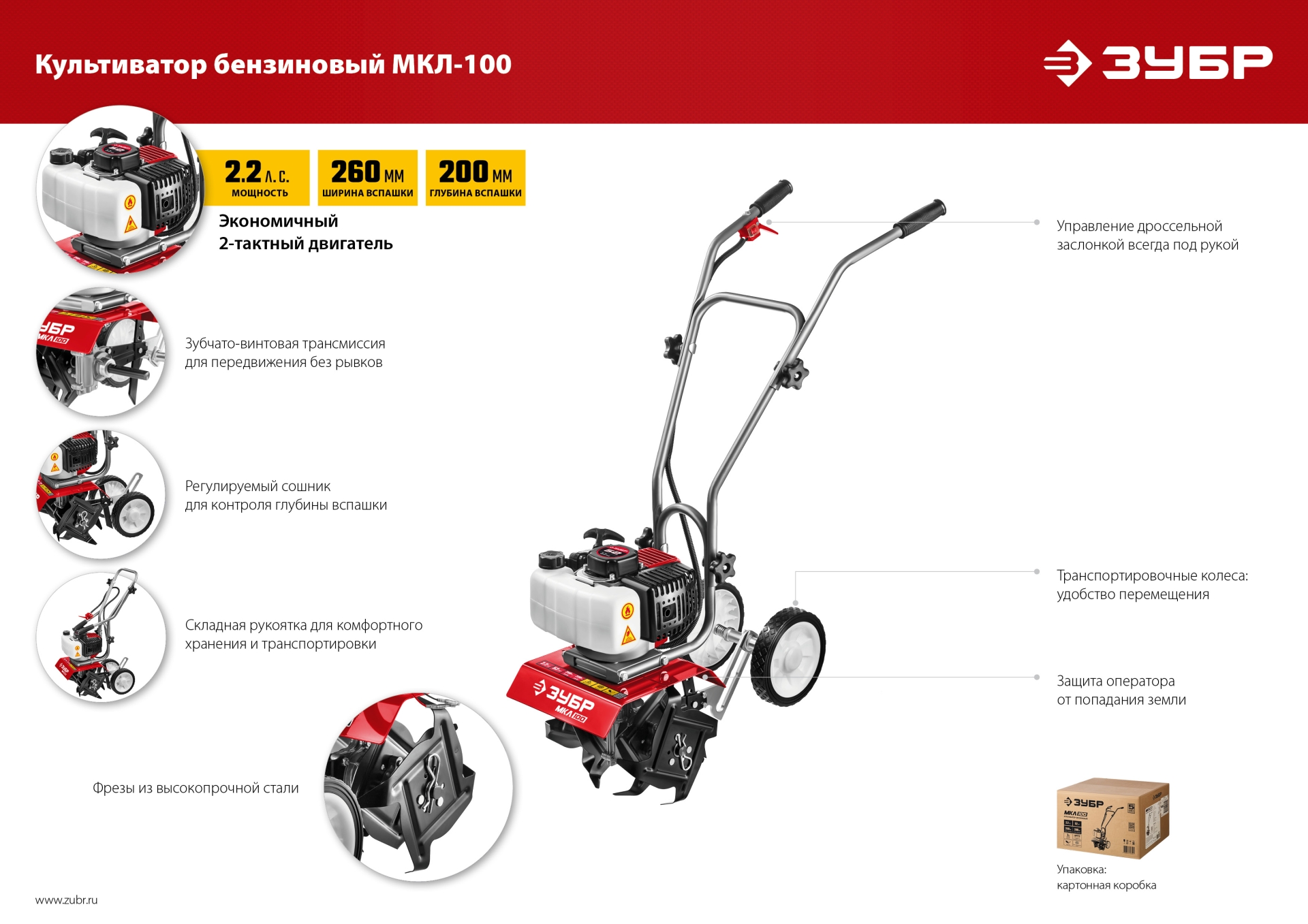 Лёгкий и манёвренный культиватор с двухтактным двигателем для рыхления и культивации почвы на приусадебном участке. Сошник позволяет контролировать величину заглубления. Складная рукоятка и транспортные колеса облегчают эксплуатацию, транспортировку и хранение.