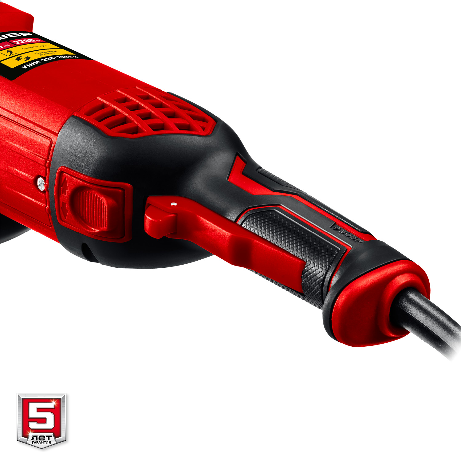 - Широкий эргономичный выключатель с пылезащитой, блокировкой непреднамеренного включения, а также фиксацией во включенном положении