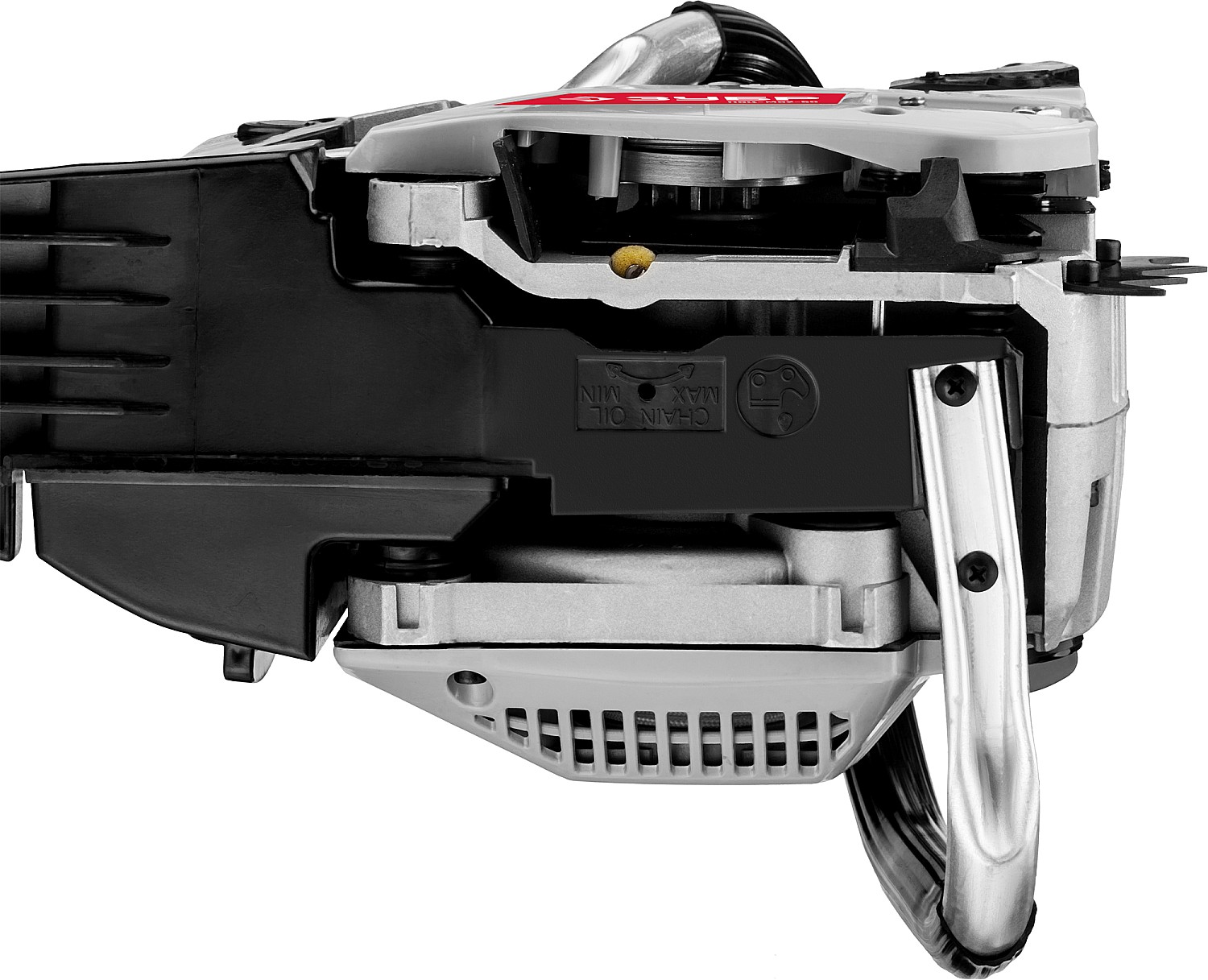 - Насос принудительной подачи смазки к цепи уменьшает износ, что увеличивает срок службы цепи и шины