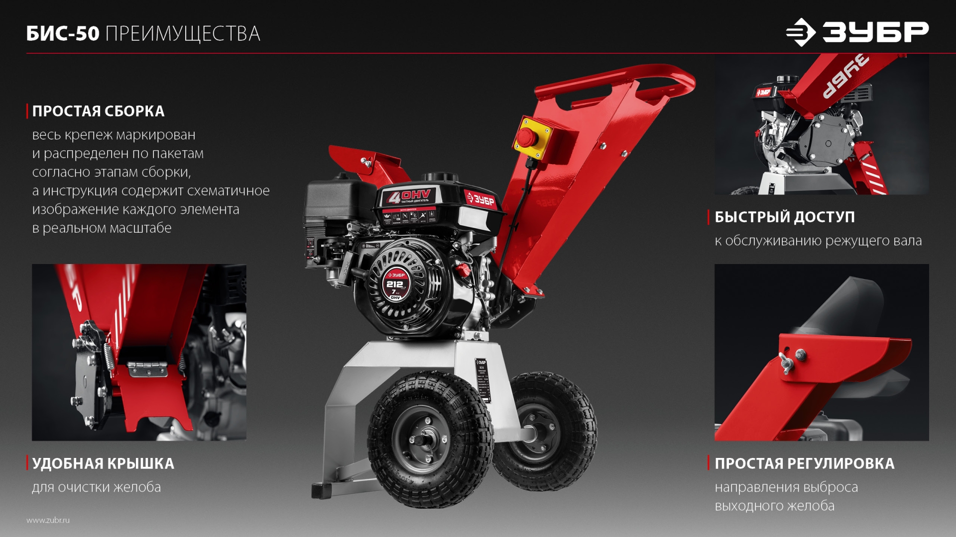 - Большие пневматические колеса для легкого перемещения